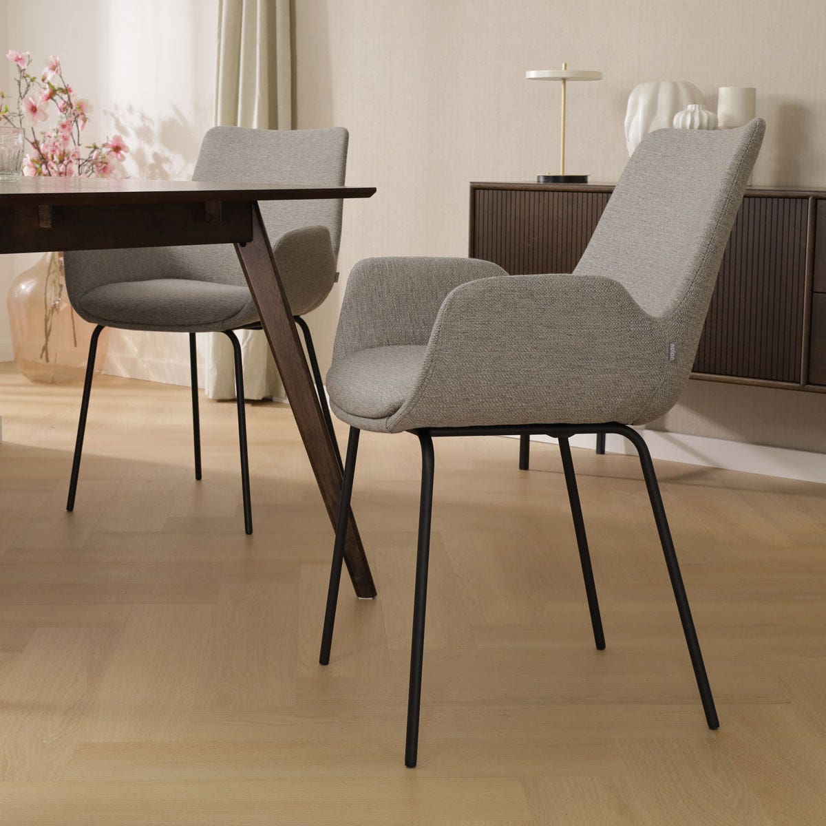 Nolon Nora-Eef Eetkamerstoel Warm Grijs - met Armleuning - Zwart