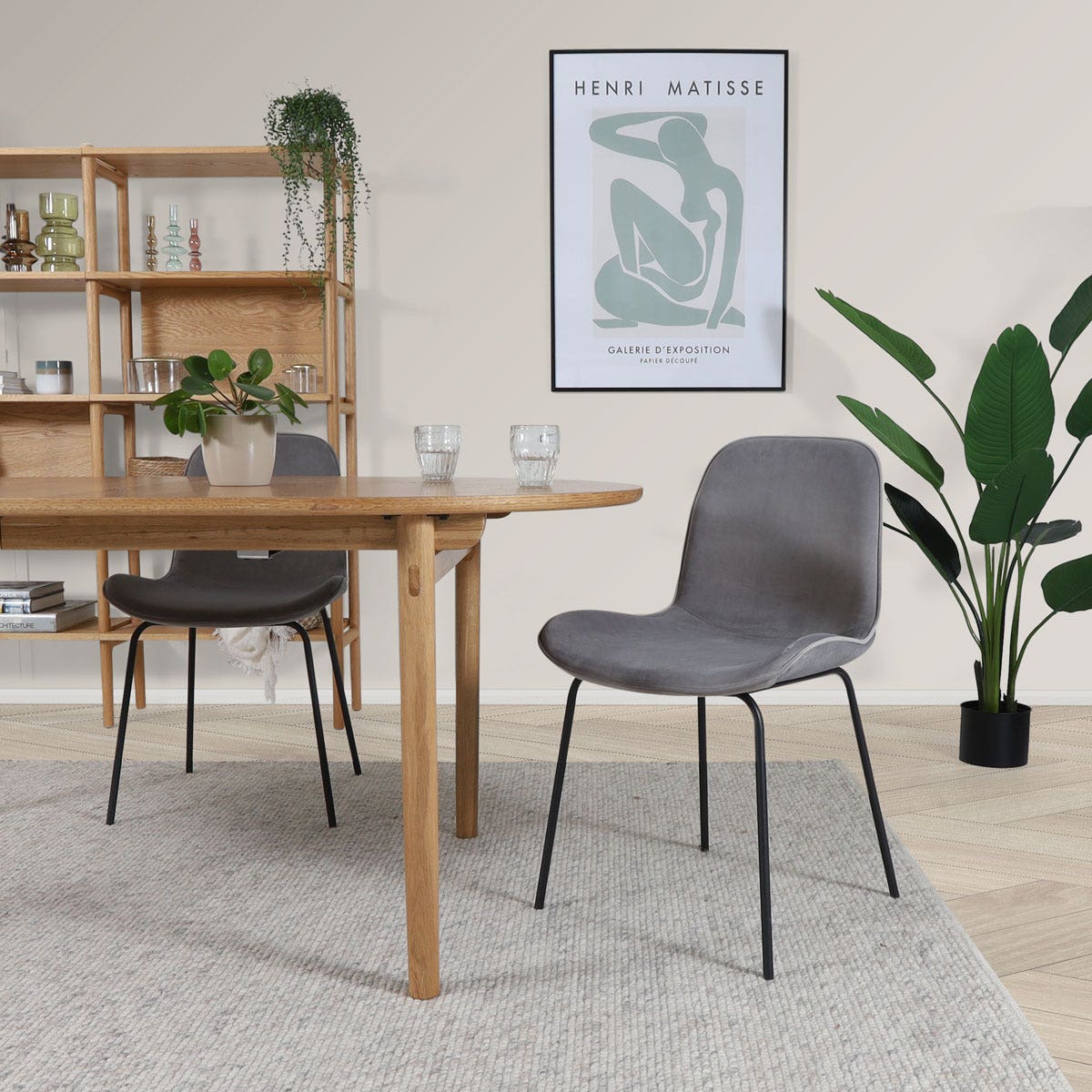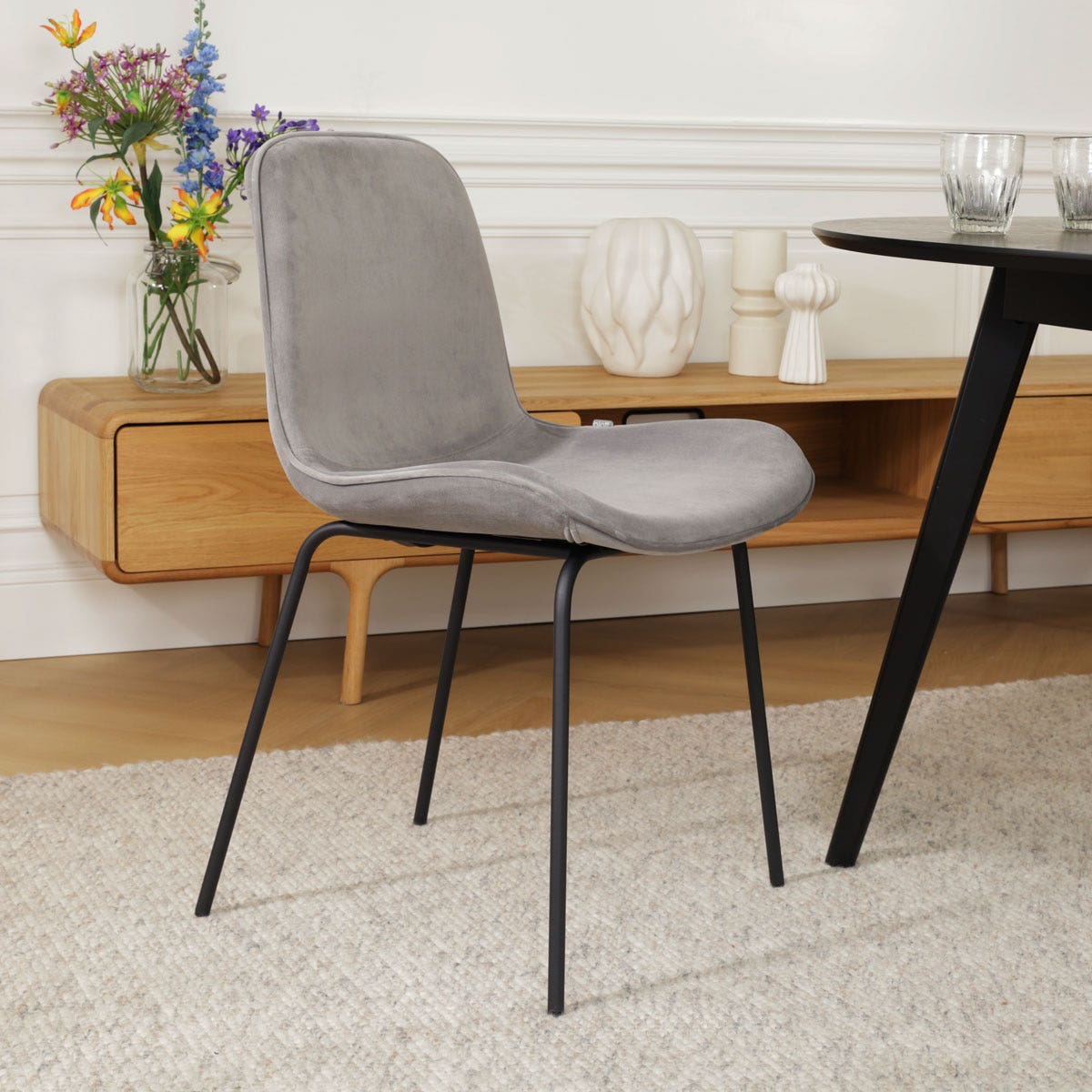 De strakke lijnen van het onderstel en de subtiele rondingen van de gestoffeerde zitting geven deze eetkamerstoel een tijdloze en stijlvolle uitstraling. Deze eetkamerstoel heeft een tijdloos design dat gemakkelijk te combineren is met iedere woonstijl. Het stabiele onderstel van de stoel is gemaakt van metaal en heeft een elegante en minimalistische uitstraling dankzij de ranke poten. De gestoffeerde zitting met gevleugeld zitvlak voegt warmte toe aan de eethoek en zorgt ervoor dat je erg comfortabel zit. Het houten binnenwerk biedt veel ondersteuning aan de rug en biedt een actieve zithouding. De Nora-Fé eetkamerstoel heeft geen armleuningen en kan daardoor zorgeloos aan iedere eettafel en op elke plek worden aangeschoven. Liever een andere bekleding? De Nora-Fé stoel is naast velvet ook in acht andere kleuren en materialen verkrijgbaar.