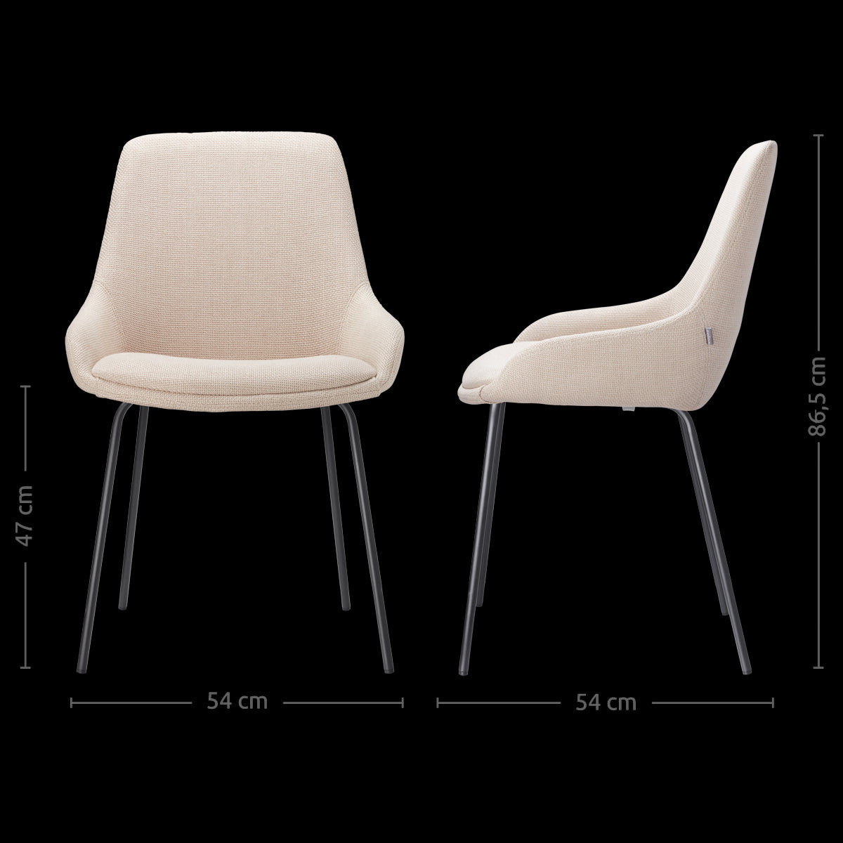 Deze stoel combineert Scandinavische elegantie met functioneel design, wat duidelijk naar voren komt in het minimalistische zwarte metalen onderstel. De stoel is volledig gestoffeerd en heeft een zithoogte van 47 cm, wat zorgt voor een comfortabele zitervaring. Het ontbreken van armleuningen maakt deze stoel ideaal voor kleinere ruimtes, omdat hij makkelijk onder elke tafel past. Met een totale hoogte van 86,5 cm en een zitdiepte van 40 cm, biedt de Nora-Isa zowel stijl als comfort. De stoel is zeer eenvoudig in elkaar te zetten, wat betekent dat je snel kunt genieten van je nieuwe meubelstuk. De stevige houten binnenwerk zorgt voor een actieve zithouding, terwijl de zitting zacht is voor extra comfort. De Nora-Isa eetkamerstoel is een uitstekende keuze voor wie op zoek is naar een stijlvolle en praktische zitoplossing zonder setverplichting.