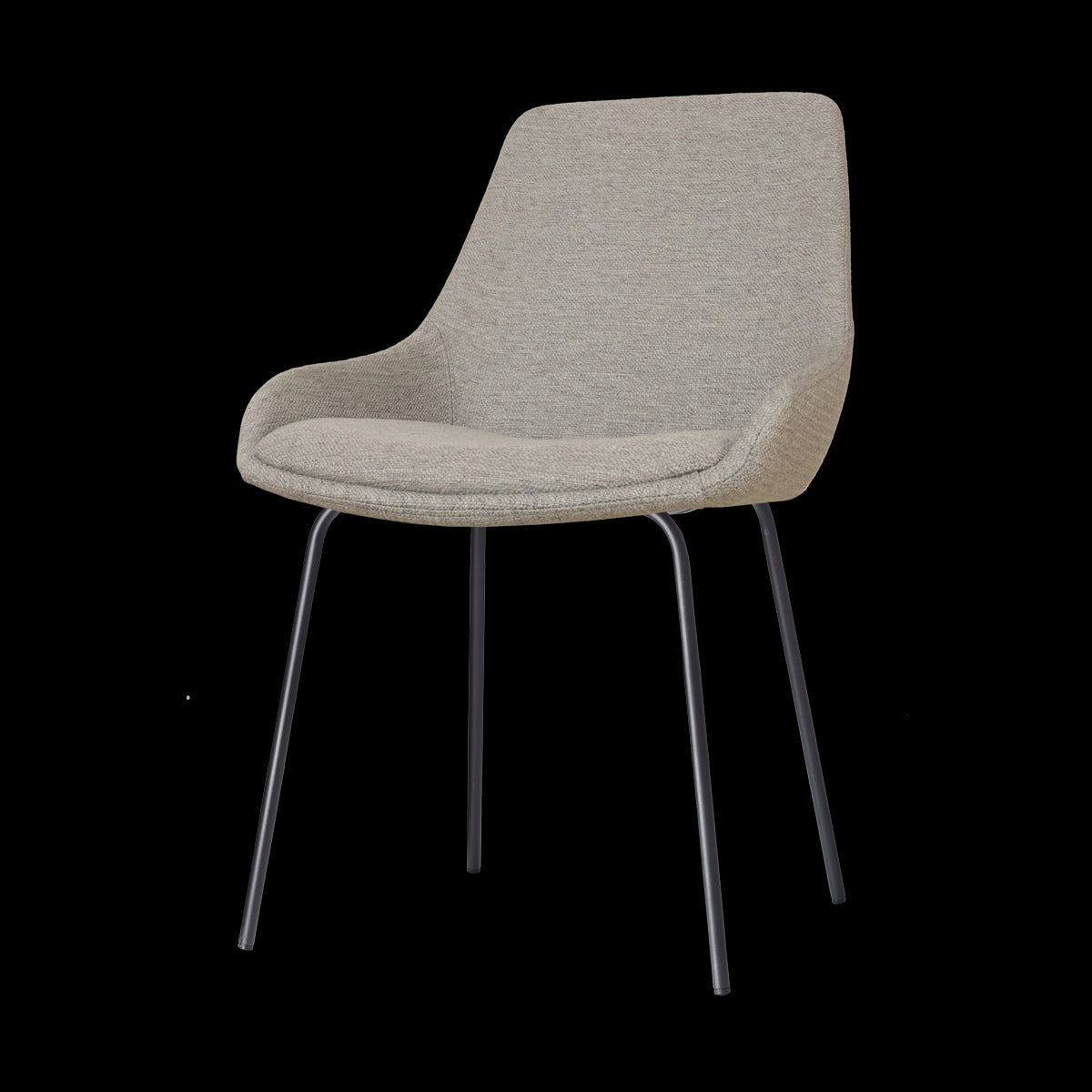 Deze stoel, ontworpen in een moderne Scandinavische stijl, biedt een perfecte balans tussen elegantie en functionaliteit. De zitting is volledig gestoffeerd en voorzien van een stevig houten binnenwerk, wat een comfortabele en actieve zithouding bevordert. Met een zithoogte van 47 cm en een zitdiepte van 40 cm, past de stoel perfect onder elke tafel dankzij het ontbreken van armleuningen. Het minimalistische ontwerp van het zwarte metalen onderstel voegt een eigentijdse uitstraling toe, terwijl de stoel eenvoudig en snel in elkaar te zetten is. Ideaal voor elke eetkamer, deze stoel is niet alleen praktisch maar ook een stijlvolle toevoeging aan je interieur. De Nora-Isa eetkamerstoel is 86,5 cm hoog en biedt veelzijdigheid met zijn moderne ontwerp en hoogwaardige materialen.