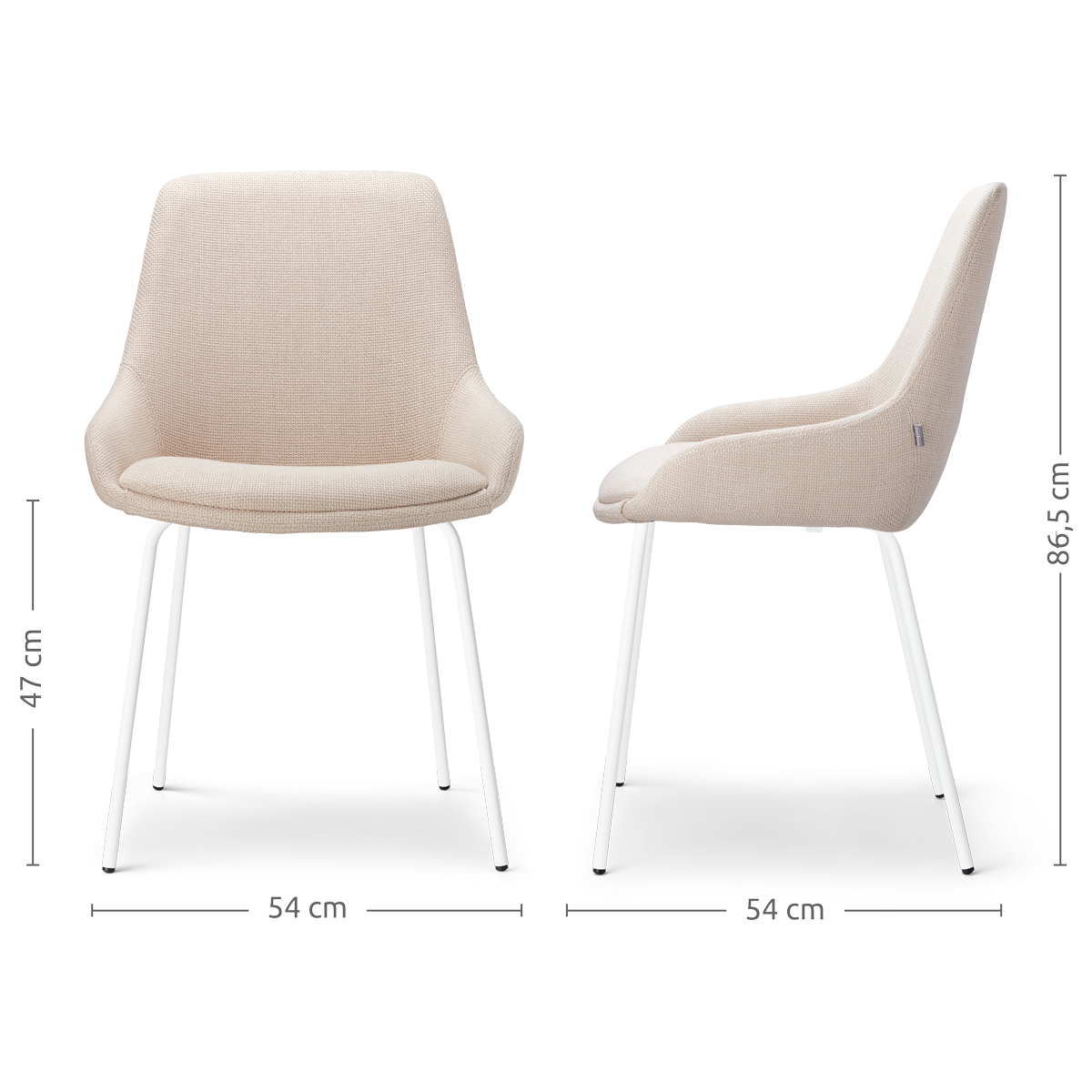 Deze stoel is de belichaming van eenvoudige elegantie en past perfect in elke stijlvolle ruimte. De combinatie van strakke lijnen en hoogwaardige materialen maakt van deze stoel een onmisbare aanvulling op jouw eethoek. De Nora-Isa eetkamerstoel heeft een minimalistisch metalen onderstel dat zorgt voor een stabiele zit. Deze stoffen eetkamerstoel is ontworpen zonder armleuningen om ruimte te besparen aan de eettafel. Een ander voordeel hiervan is dat je je geen zorgen hoeft te maken of de stoel wel onder het tafelblad past. De gestoffeerde zitting heeft een stevig houten binnenwerk voor een actieve zithouding en een gevoerd zitvlak voor zodat je lekker zacht zit. De bekleding is in twee verschillende kleuren en materialen verkrijgbaar. Zo kan je kiezen voor de luxe stoffen bekleding met een tijdloze uitstraling, of juist de bouclé stof die deze eetkamerstoel nog meer sfeer in de eetkamer brengt.