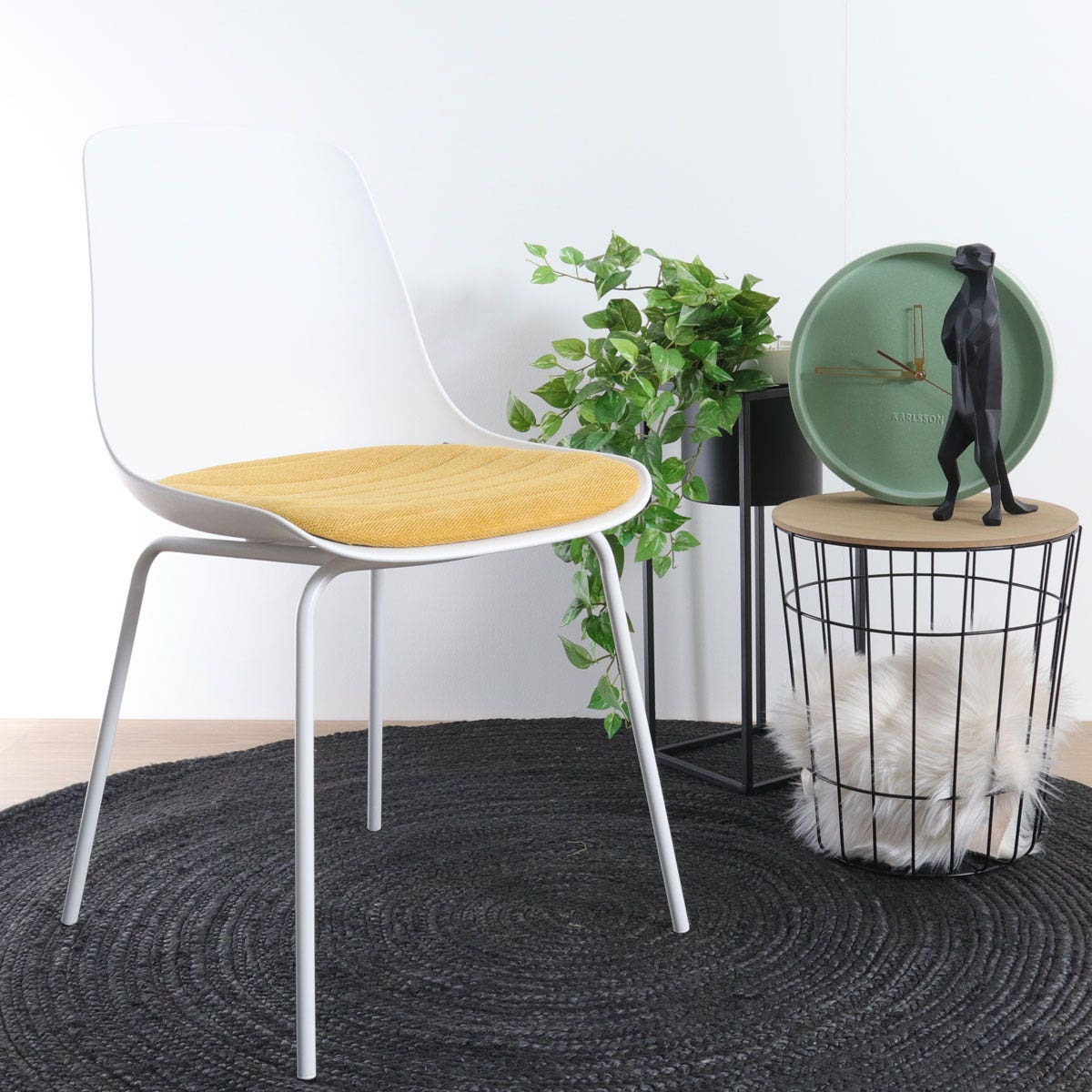 Nolon Nora-Liv Eetkamerstoel Wit - Okergeel Kussen - Witte Poten