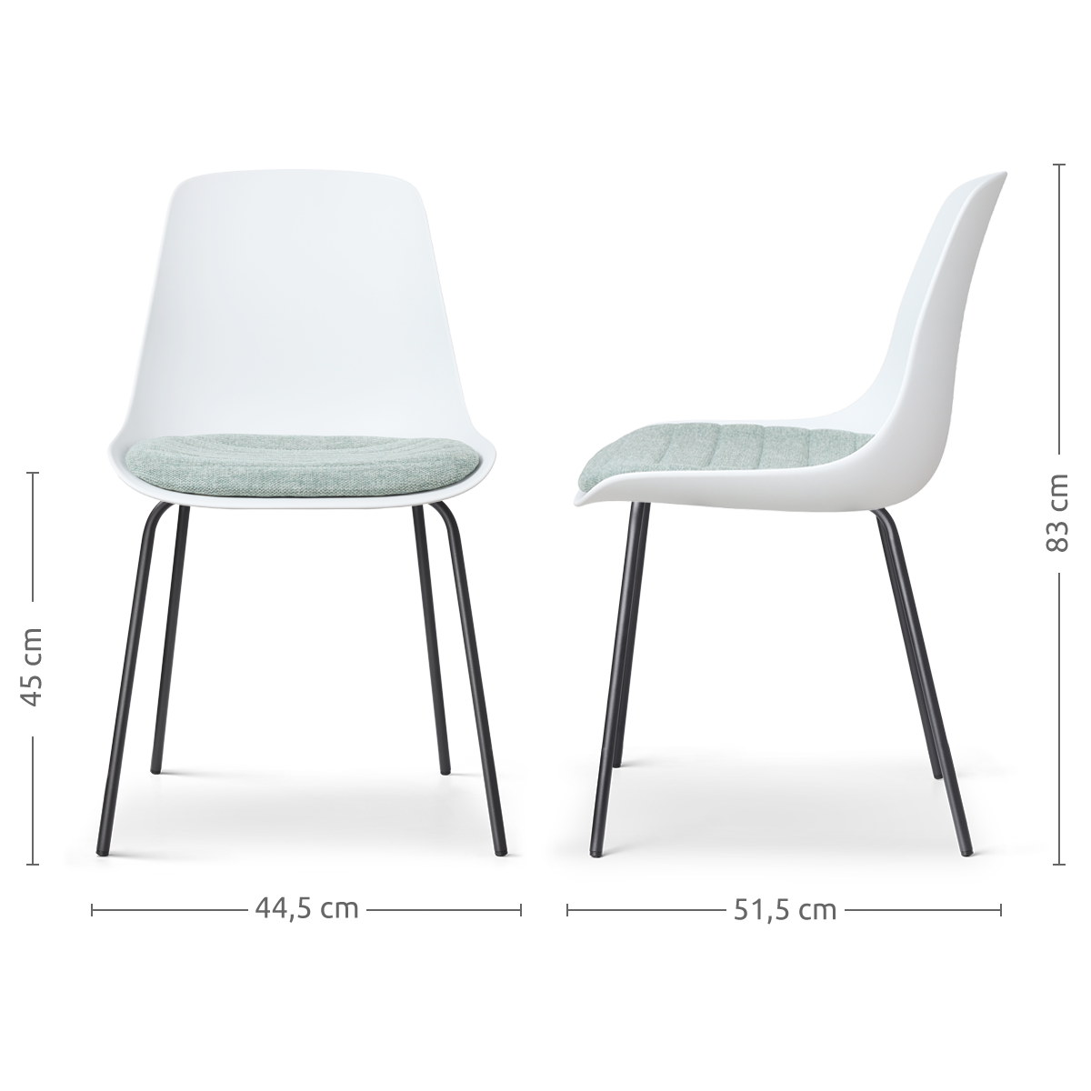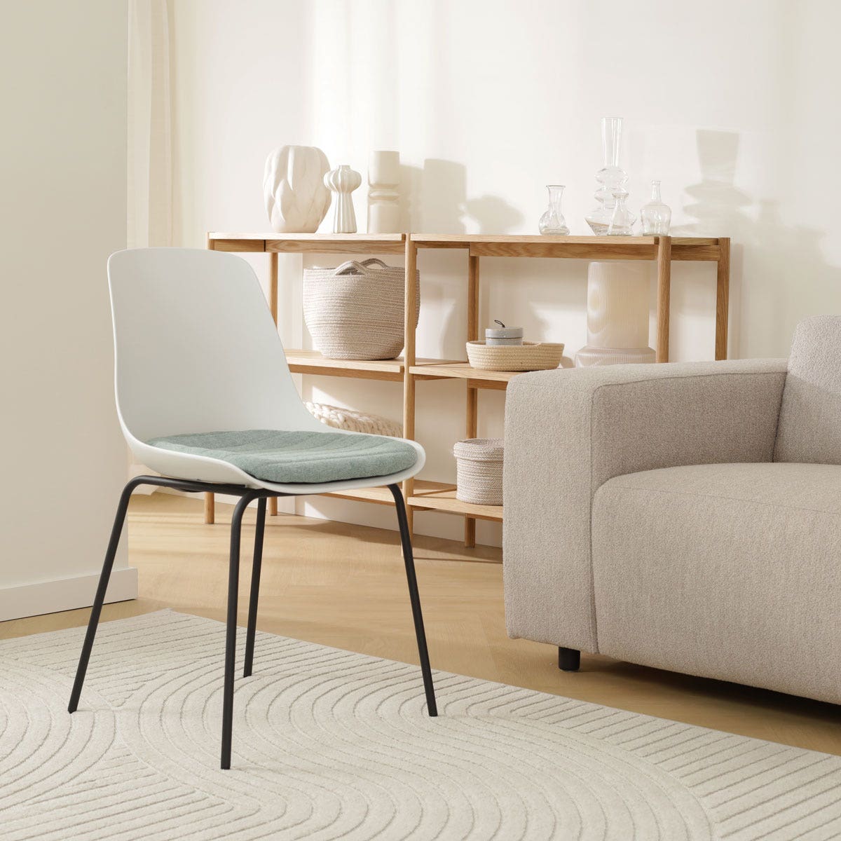 Deze eetkamerstoel combineert verschillende materialen op stijlvolle wijze en geeft de eethoek daarmee een echte upgrade. De duurzame kunststof zitting is niet alleen gemakkelijk schoon te maken, maar biedt ook een stevige en comfortabele basis. Het metalen onderstel met ranke pootjes zorgt ervoor dat de eetkamerstoel stabiel op de grond staat en draagt bij aan het tijdloze karakter van dit ontwerp. Naast de ergonomisch ontworpen kunststof zitting draagt ook het vaste zitkussen bij aan het zitcomfort van deze stoel. Het kussen is bekleed met hoogwaardige stof en is in vijf verschillende kleuren verkrijgbaar. Met een keuze tussen zwart en wit voor de kunststof kuip en daarnaast nog de twee kleuren waarin het Nora onderstel verkrijgbaar is, is de Nora-Liv eetkamerstoel in ieder interieur te combineren.