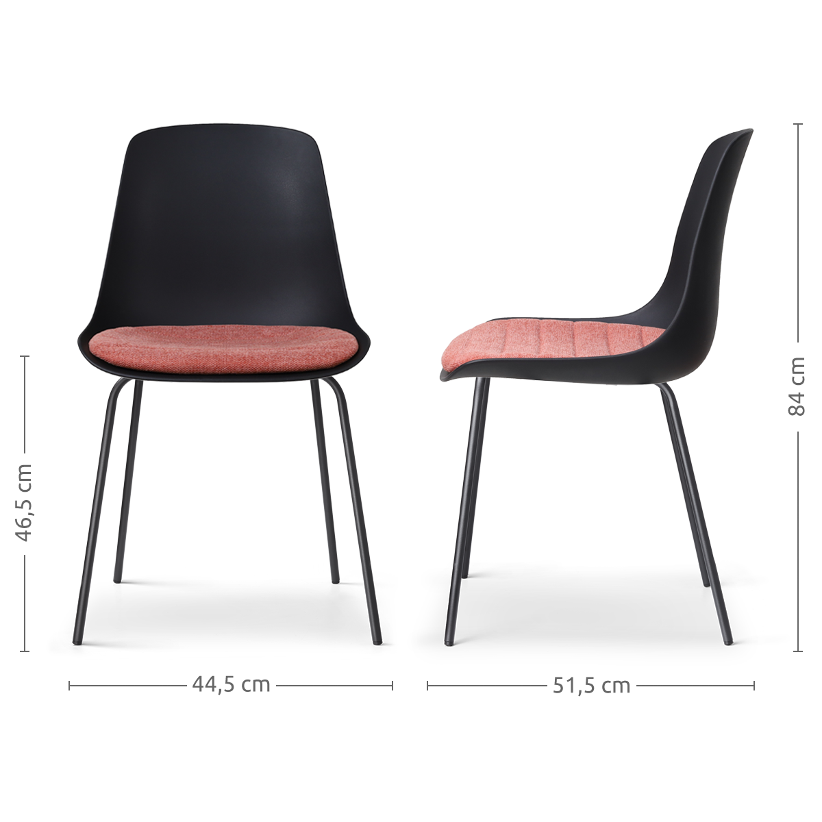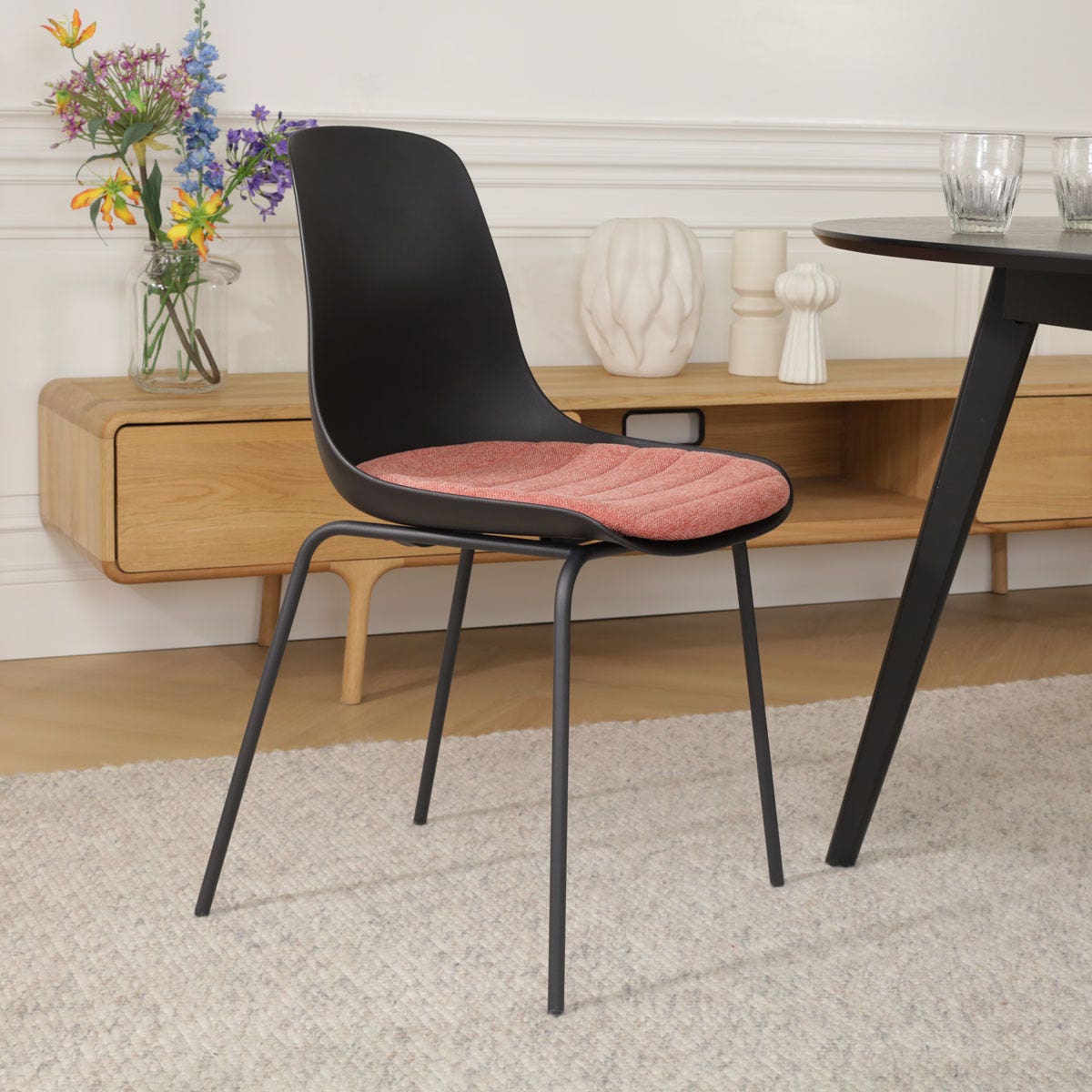 Deze eetkamerstoel combineert verschillende materialen op stijlvolle wijze en geeft de eethoek daarmee een echte upgrade. De duurzame kunststof zitting is niet alleen gemakkelijk schoon te maken, maar biedt ook een stevige en comfortabele basis. Het metalen onderstel met ranke pootjes zorgt ervoor dat de eetkamerstoel stabiel op de grond staat en draagt bij aan het tijdloze karakter van dit ontwerp. Naast de ergonomisch ontworpen kunststof zitting draagt ook het vaste zitkussen bij aan het zitcomfort van deze stoel. Het kussen is bekleed met hoogwaardige stof en is in vijf verschillende kleuren verkrijgbaar. Met een keuze tussen zwart en wit voor de kunststof kuip en daarnaast nog de twee kleuren waarin het Nora onderstel verkrijgbaar is, is de Nora-Liv eetkamerstoel in ieder interieur te combineren.