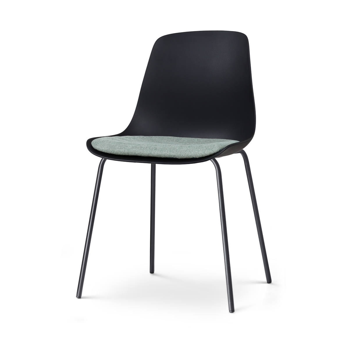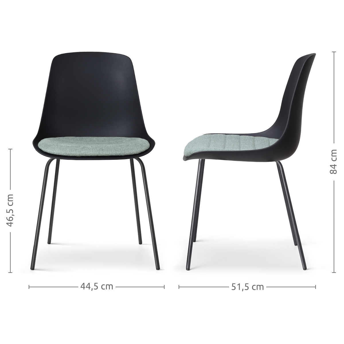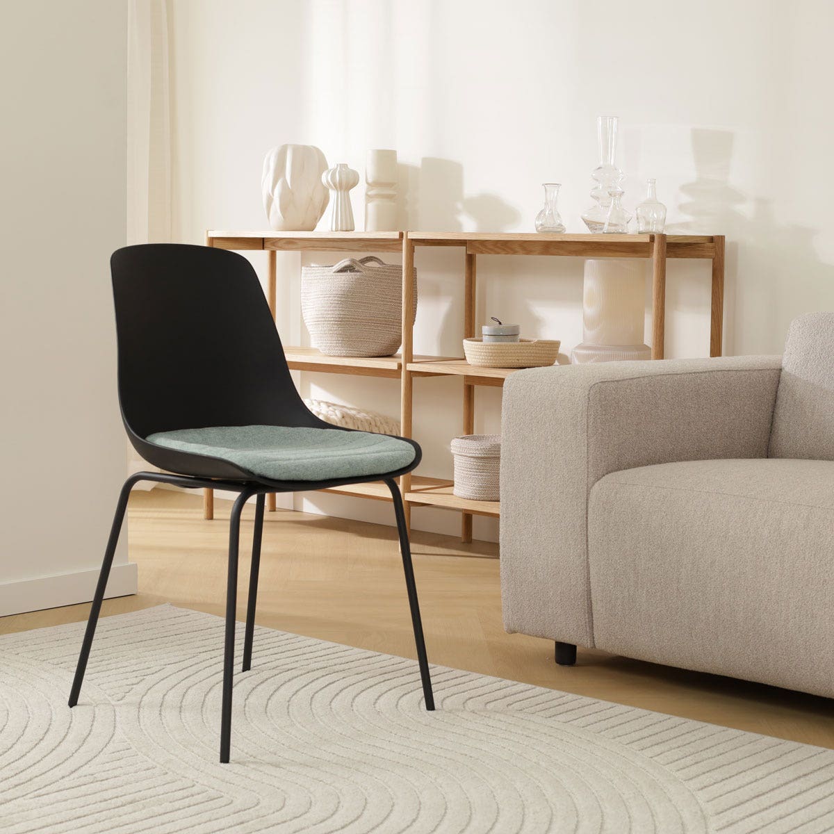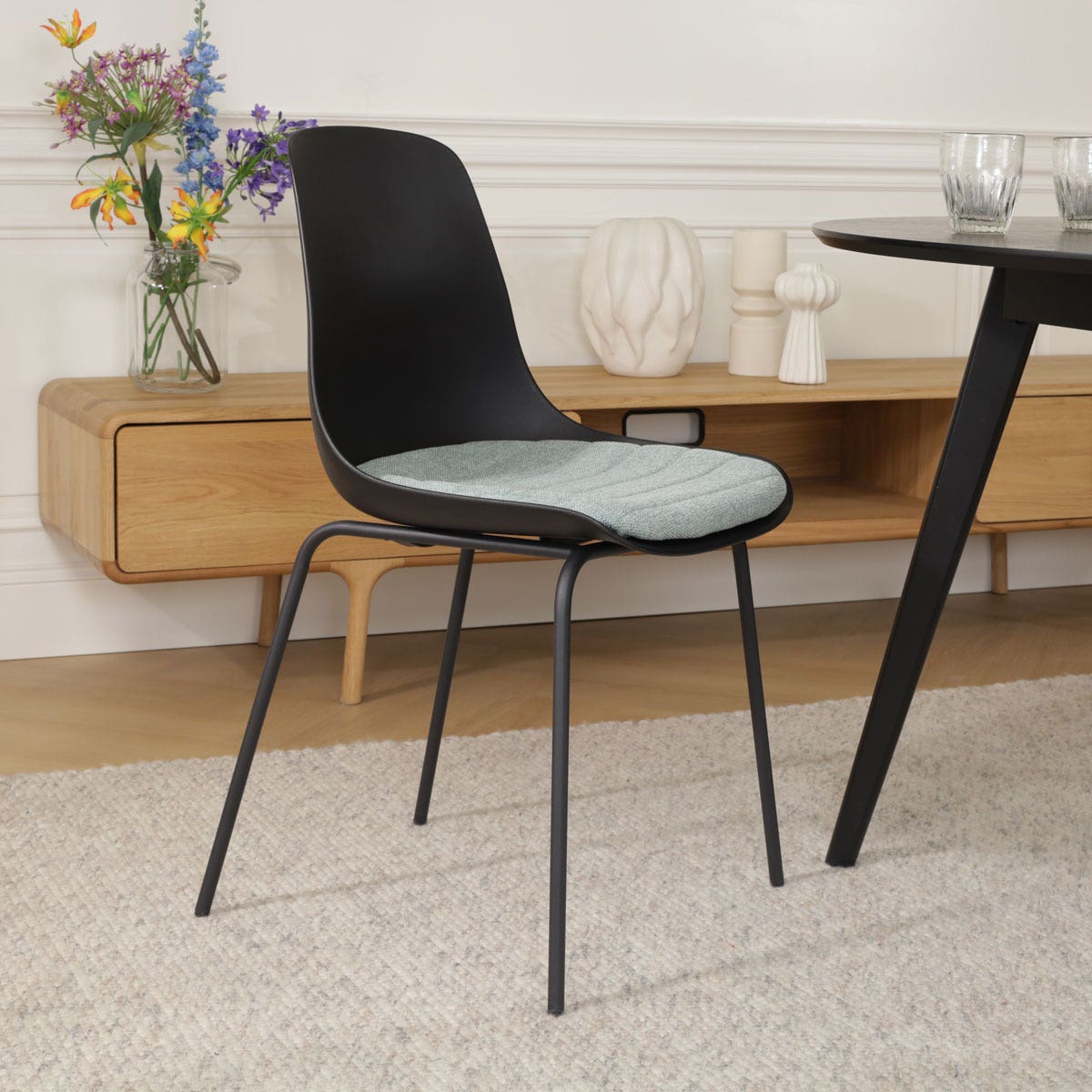 Nolon Nora-Liv Eetkamerstoel Zwart - Zacht Groen Kussen - Zwarte Poten