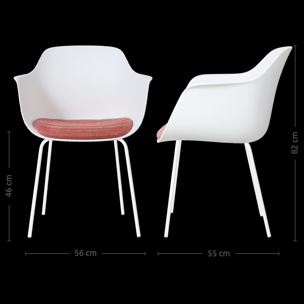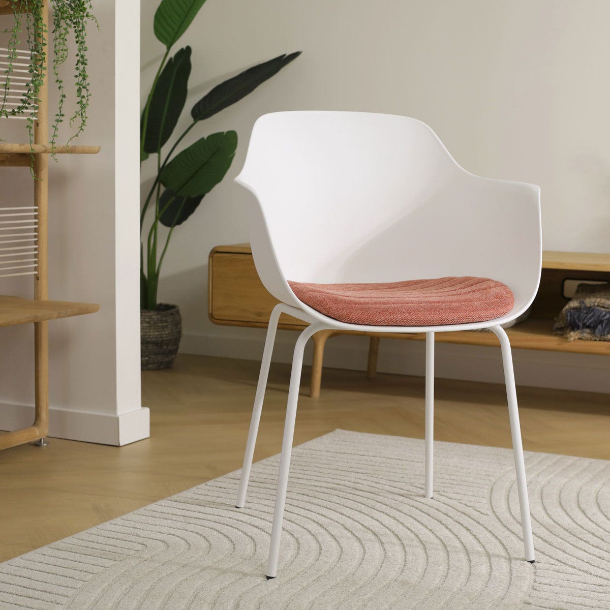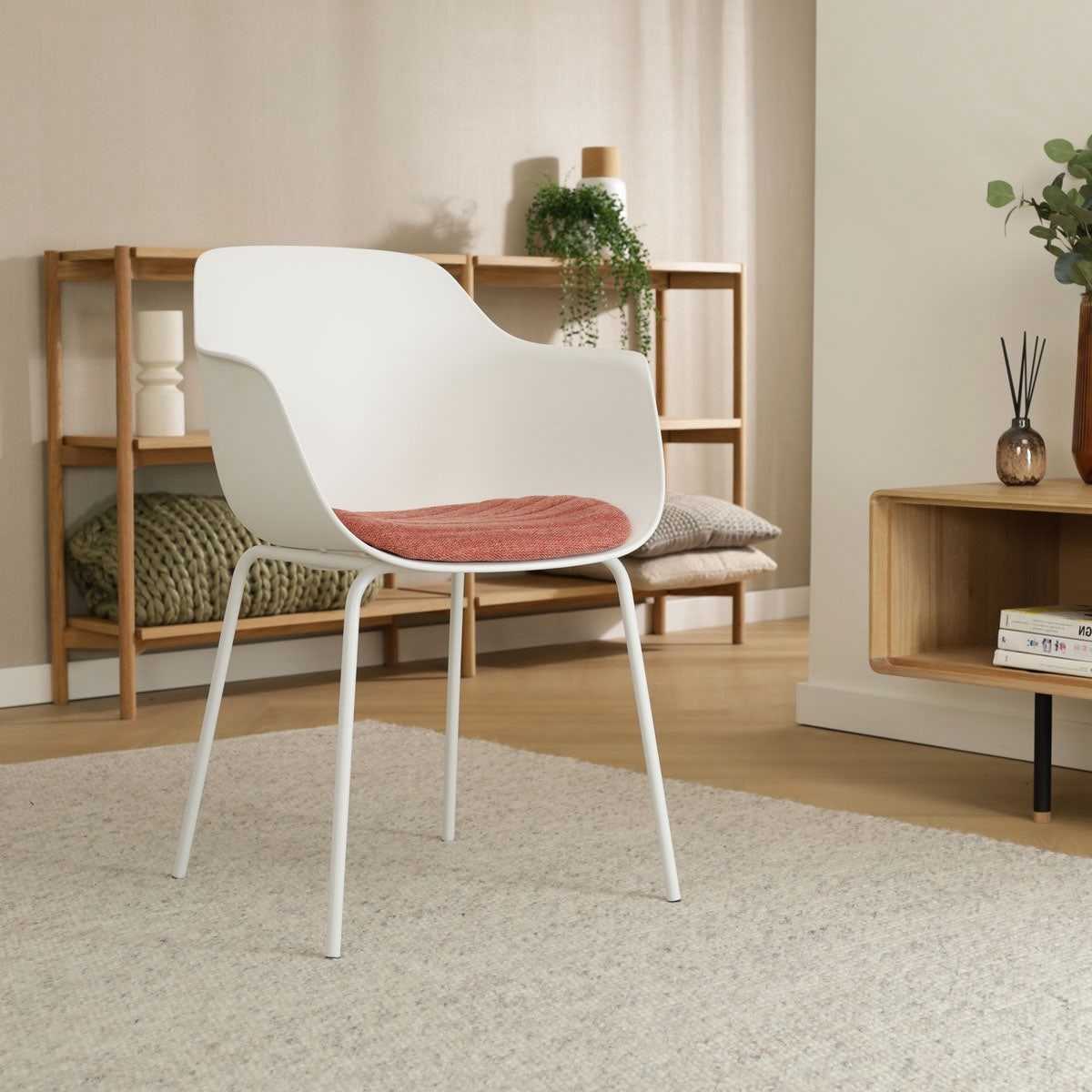 De zitting van deze eetkamerstoel is verkrijgbaar in het kunststof en je kunt kiezen uit verschillende kleuren vaste zitkussens in de stoel. Bovendien heeft de zitting armleuningen, voor nog meer comfort. Kortom een ideale stoel voor bij jou thuis!