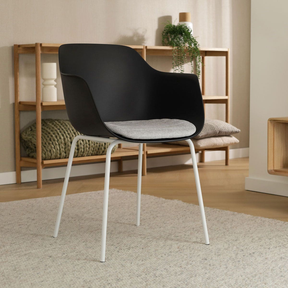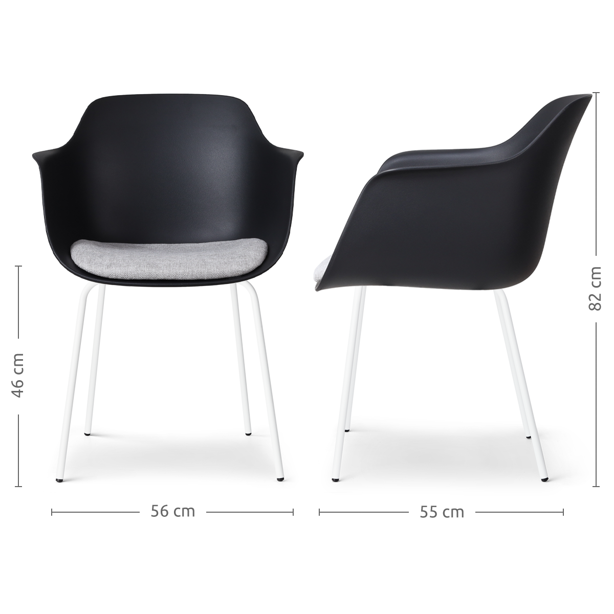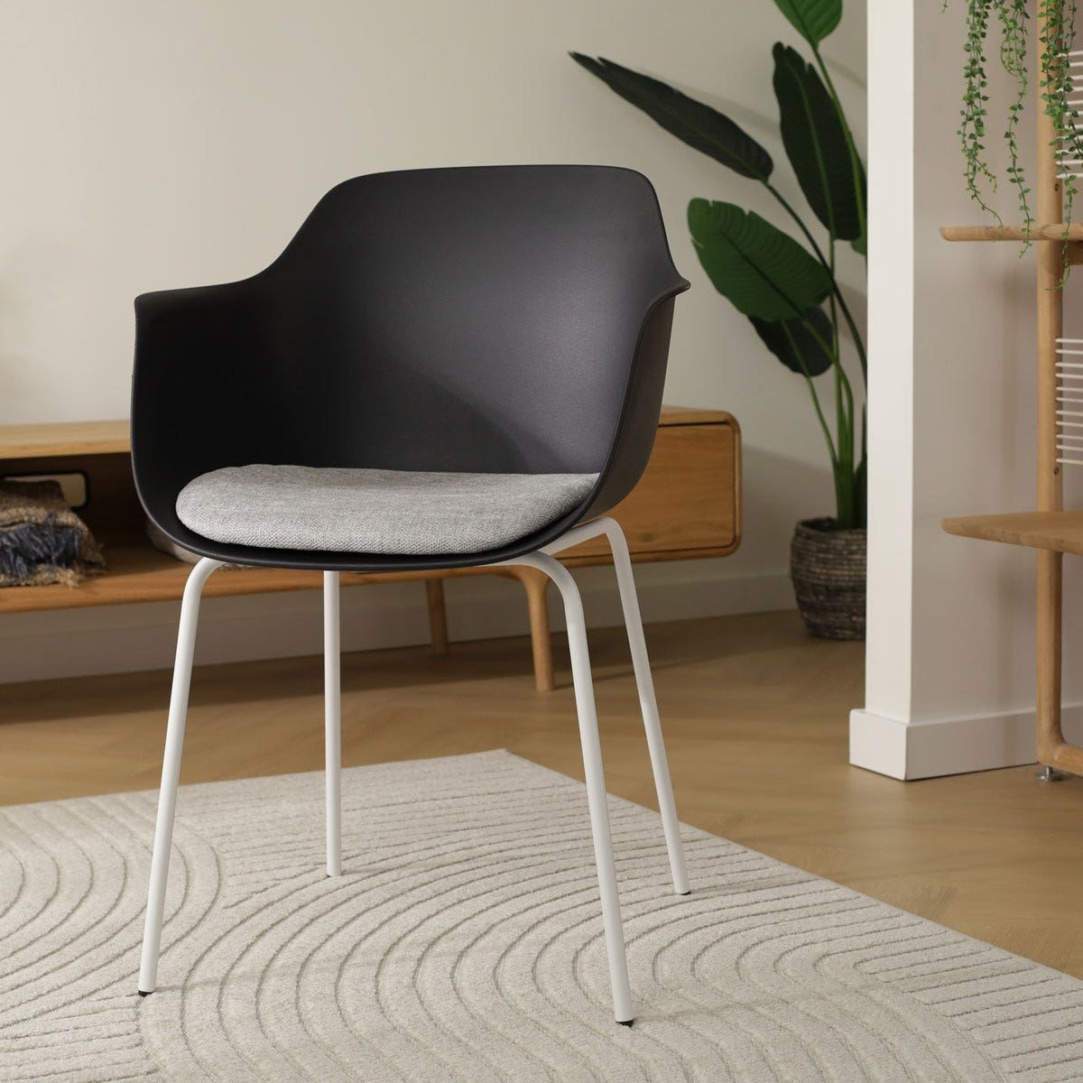 De zitting van deze eetkamerstoel is verkrijgbaar in het kunststof en je kunt kiezen uit verschillende kleuren vaste zitkussens in de stoel. Bovendien heeft de zitting armleuningen, voor nog meer comfort. Gebruik de stoel in de eetkamer aan de grote eettafel om urenlang te kunnen natafelen, in de slaapkamer om je kleding op te leggen en in de gang om gemakkelijk je schoenen aan- en uit te trekken. Kortom een ideale stoel voor bij jou thuis!