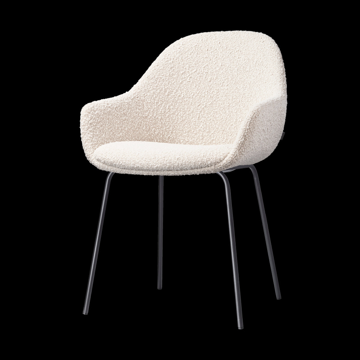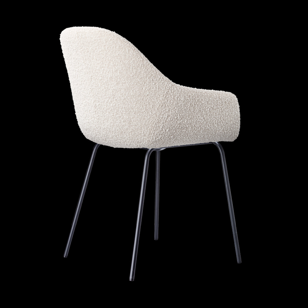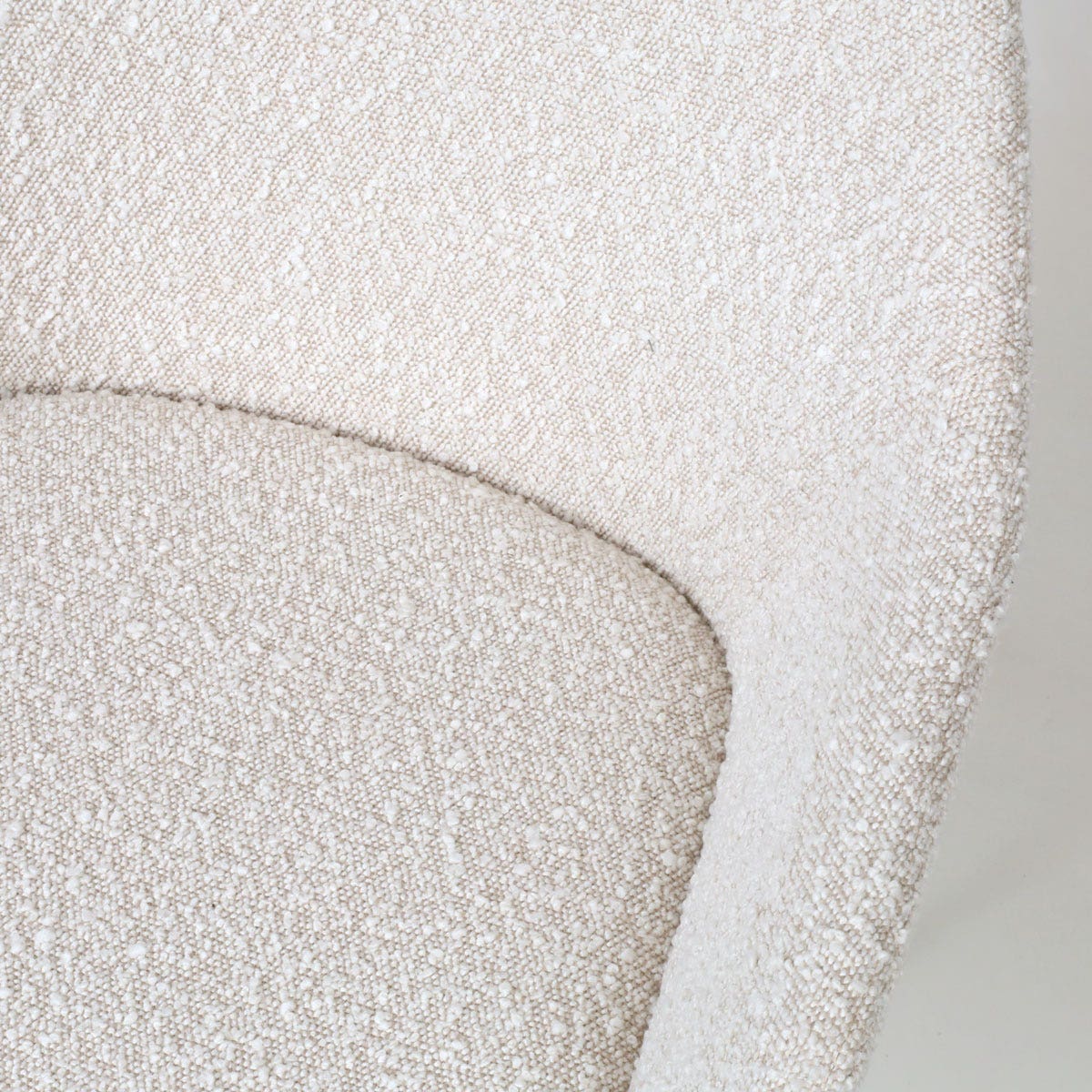 Beige bouclé eetkamerstoel - luxe scandinavisch design met zwarte poten.