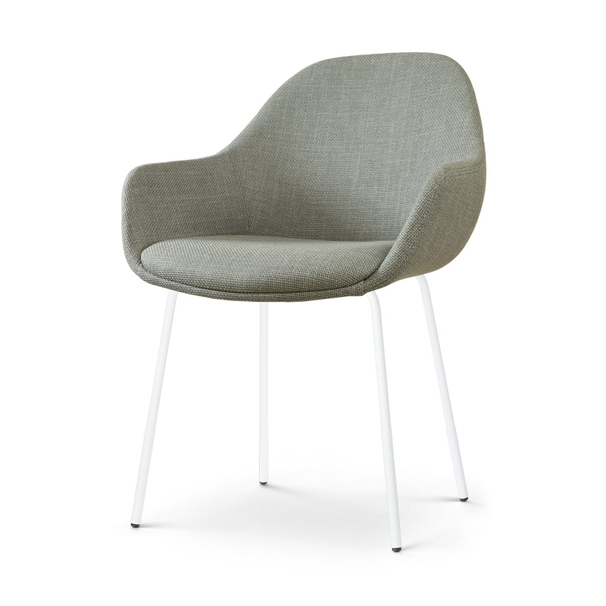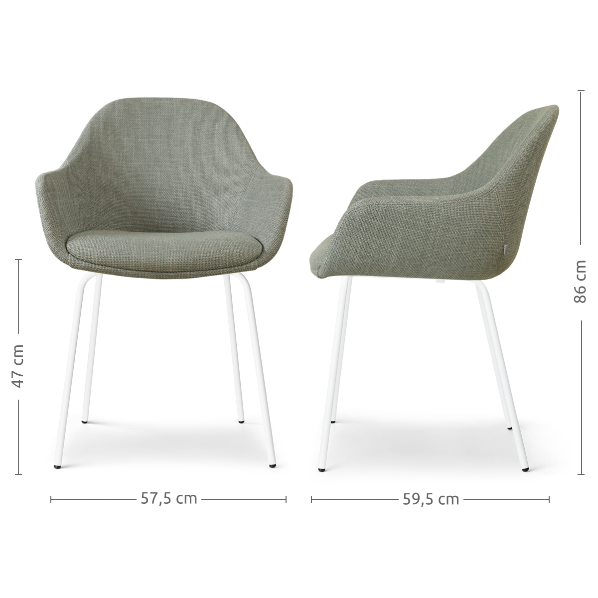 De Nora-Mae saliegroene eetkamerstoel met witte poten van Nolon is onderdeel van een mix en match collectie. Dit betekent dat zowel het onderstel als de zitting van deze stoel in diverse andere combinaties verkrijgbaar zijn. De Mae zitting is verkrijgbaar in zes verschillende stoffen en kleuren, maar het metalen Nora onderstel kan ook gecombineerd worden met één van de andere zittingen van Nolon. De Mae zitting kan juist weer worden gecombineerd met alle andere onderstellen, zoals een draaibaar onderstel of een onderstel met houten poten.