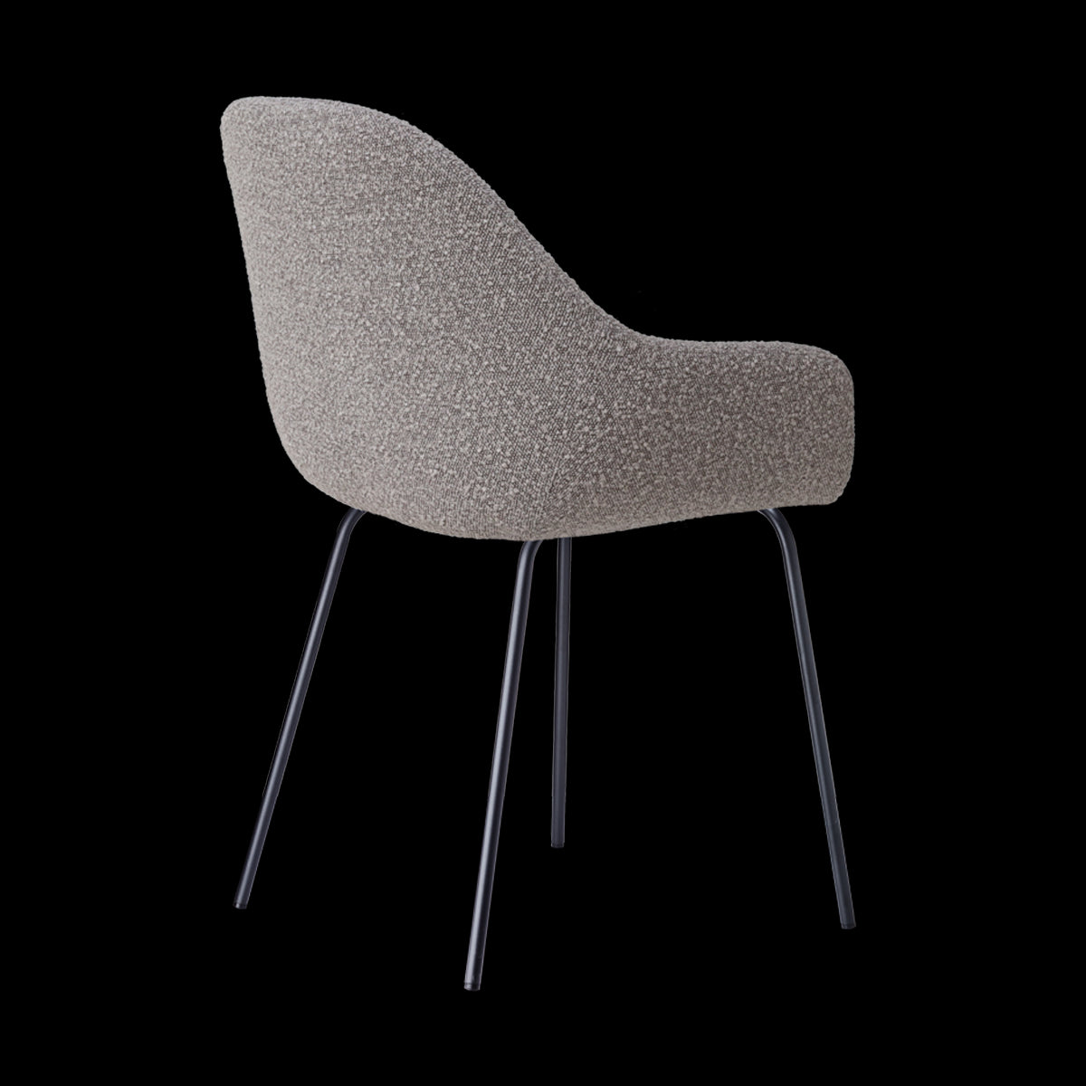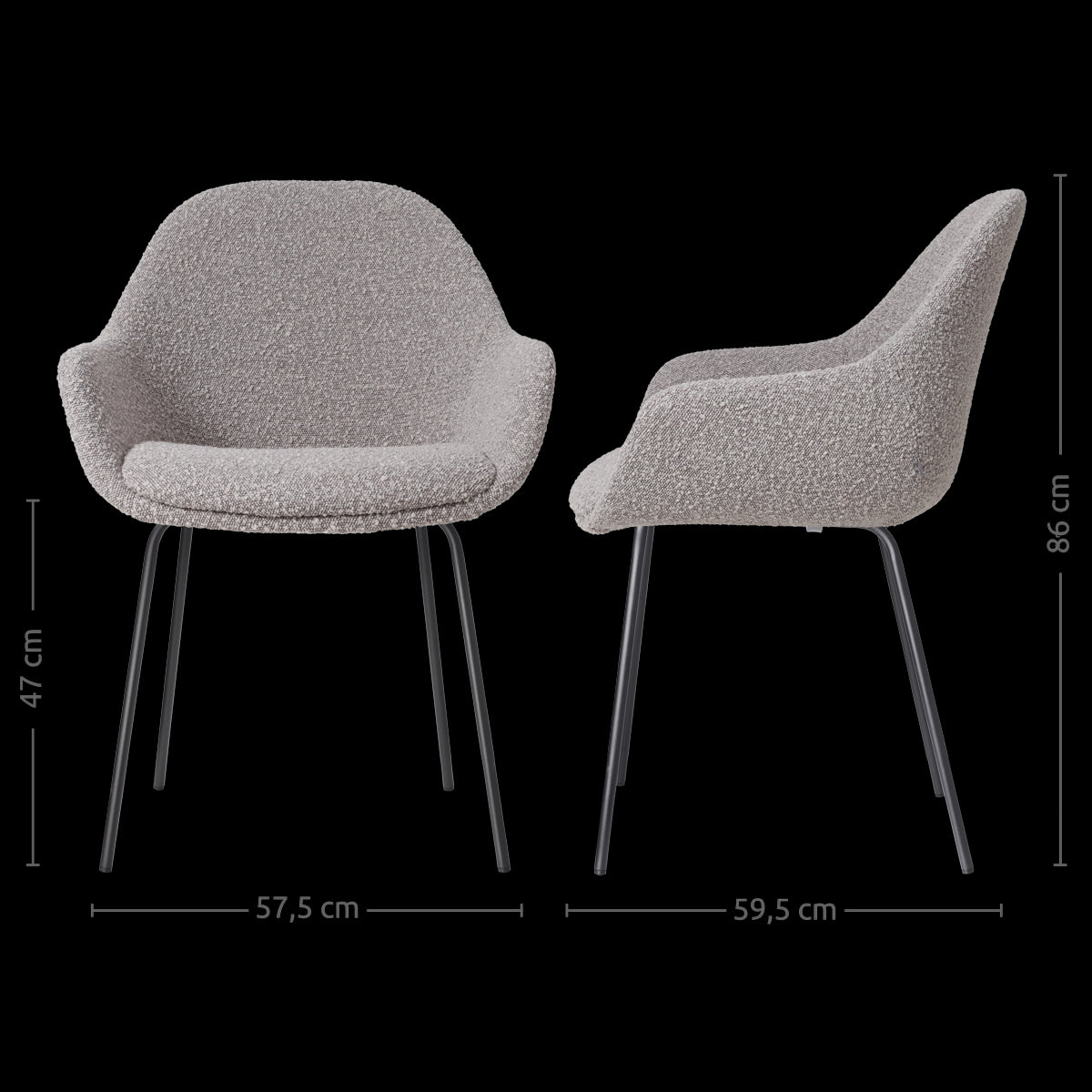 Deze eetkamerstoel is de ideale combinatie van een modern metalen onderstel met een uitnodigende stoffen zitting. Het ranke onderstel met de vier metalen poten zorgt voor een stabiele zit en geeft de eetkamerstoel de nodige elegantie. De kuipzitting is voorzien van armleuningen zodat urenlang natafelen een gemak is. De zitting van de Nora-Mae eetkamerstoel is verkrijgbaar in twee kleuren en twee verschillende materialen. Ga jij voor een luxe beige bekleding of durf je het aan met een bouclé eetkamerstoel? Welke variant je ook kiest, de Nora-Mae eetkamerstoel maakt van jouw eetkamer een warme en uitnodigende plek om samen te komen met vrienden en familie.