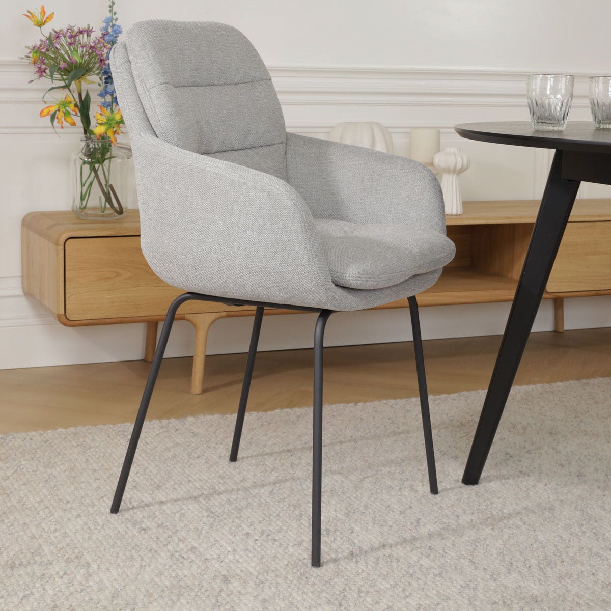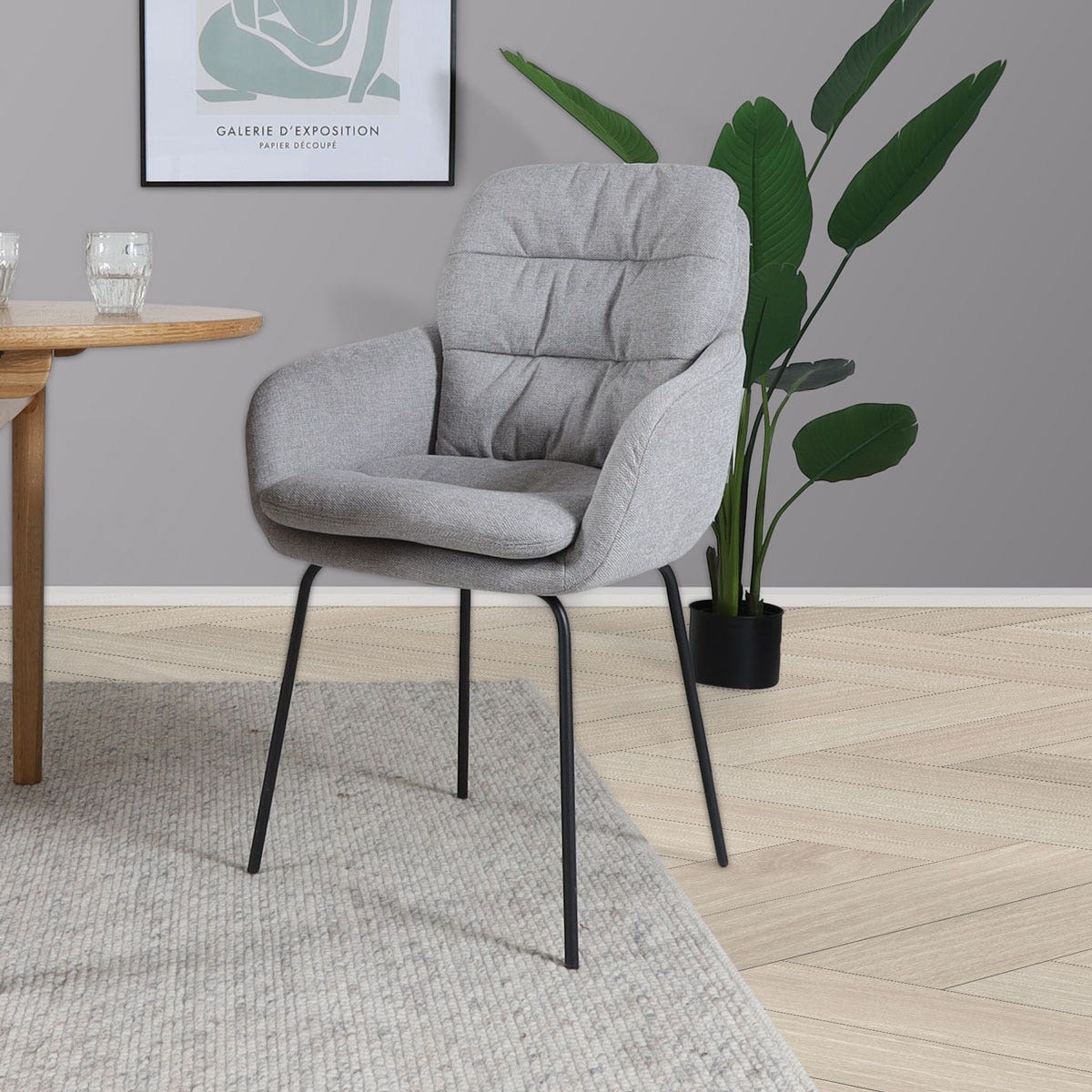 Deze eetkamerstoel is niet alleen een lust voor het oog, maar ook een genot om op te zitten. De luxe zitting is ontworpen met een hoge rugleuning en armleuningen om het lichaam optimale ondersteuning te bieden tijdens uitgebreide diners. Het vaste zitkussen zorgt ervoor dat je extra zacht zit en ook de stoffen bekleding draagt bij aan het comfort. Het minimalistische metalen onderstel heeft slanke, ronde pootjes en vormt een perfect contrast met de zitting. De hoogwaardige materialen van deze eetkamerstoel garanderen duurzaamheid en langdurig gebruik. Met de Nora-Mia eetkamerstoel is comfortabel aan tafel zitten een zekerheid en zorg je daarnaast dus ook nog eens voor een stijlvolle toevoeging aan de eethoek.