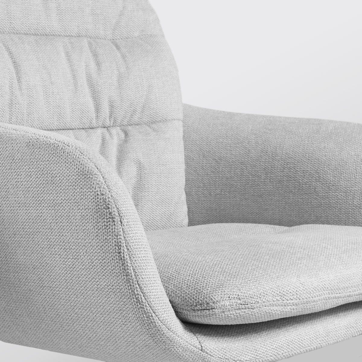 - Het vaste zitkussen en de stoffen bekleding zorgen voor een zachte zit