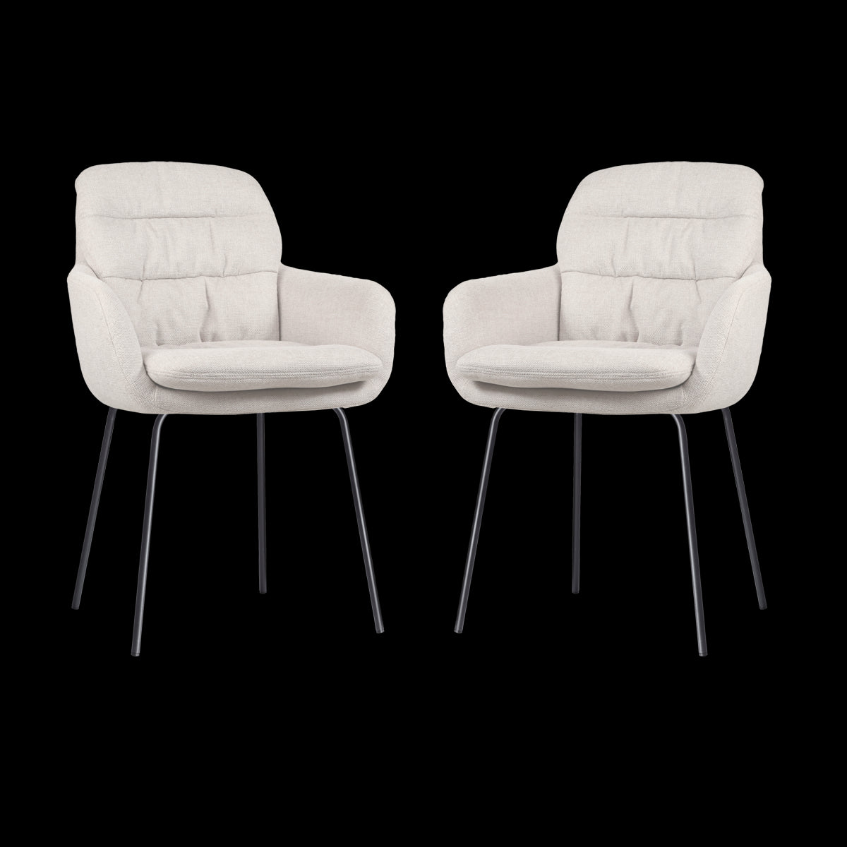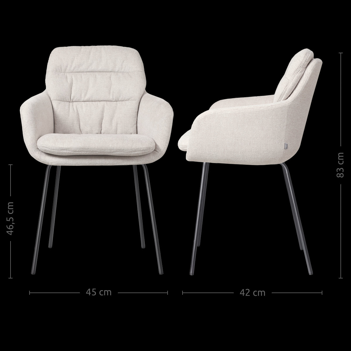 Deze eetkamerstoelen zijn niet alleen een lust voor het oog, maar ook een genot om op te zitten. De luxe zitting is ontworpen met een hoge rugleuning en armleuningen om het lichaam optimale ondersteuning te bieden tijdens uitgebreide diners. Het vaste zitkussen zorgt ervoor dat je extra zacht zit en ook de stoffen bekleding draagt bij aan het comfort. Het minimalistische metalen onderstel heeft slanke, ronde pootjes en vormt een perfect contrast met de zitting. De hoogwaardige materialen van deze eetkamerstoel garanderen duurzaamheid en langdurig gebruik. Met de Nora-Mia eetkamerstoel is comfortabel aan tafel zitten een zekerheid en zorg je daarnaast dus ook nog eens voor een stijlvolle toevoeging aan de eethoek.
