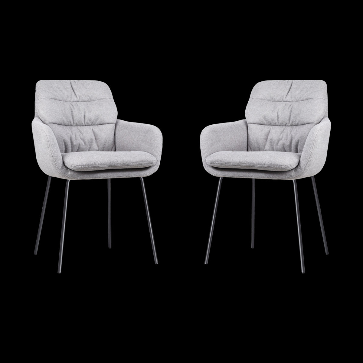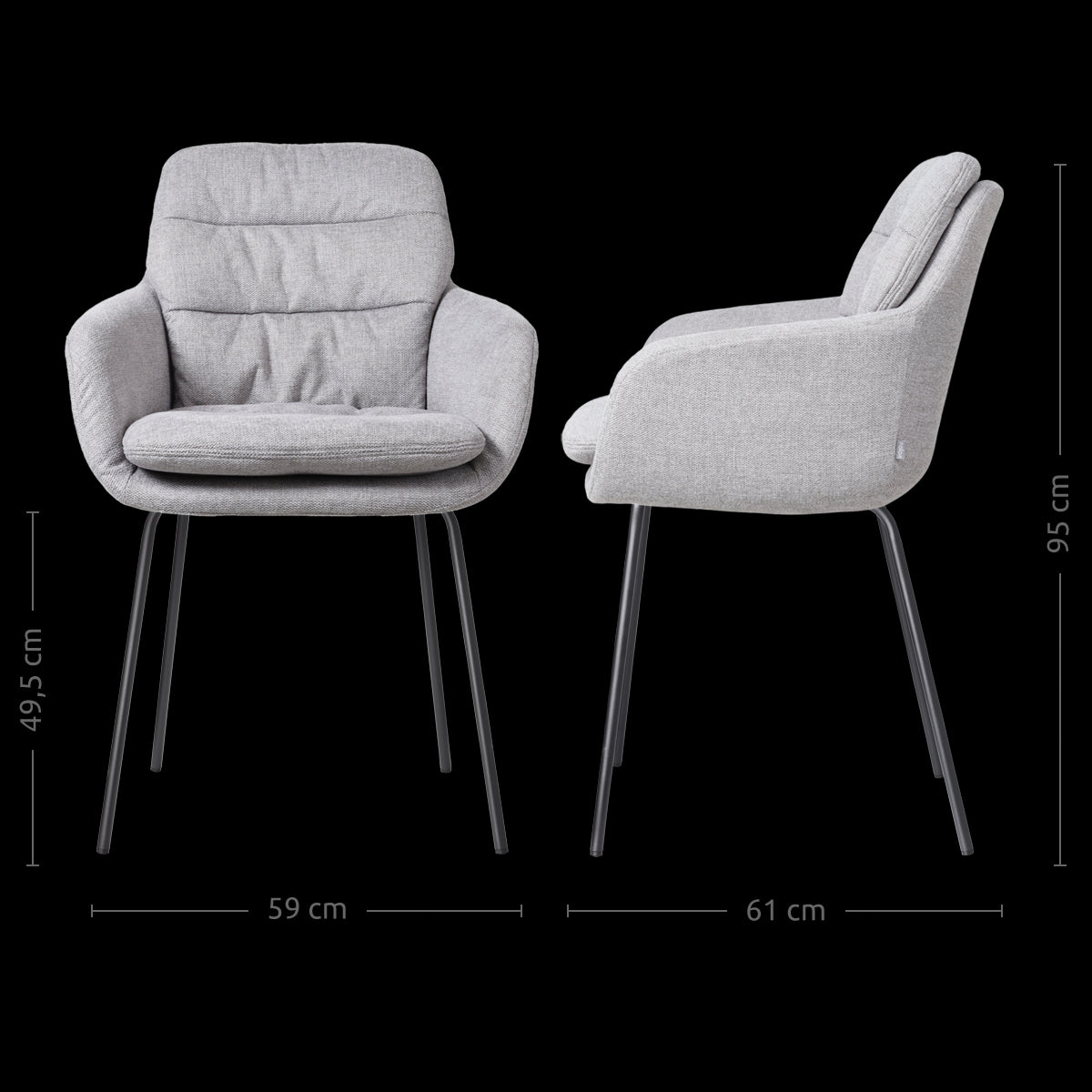 Deze eetkamerstoelen zijn niet alleen een lust voor het oog, maar ook een genot om op te zitten. De luxe zitting is ontworpen met een hoge rugleuning en armleuningen om het lichaam optimale ondersteuning te bieden tijdens uitgebreide diners. Het vaste zitkussen zorgt ervoor dat je extra zacht zit en ook de stoffen bekleding draagt bij aan het comfort. Het minimalistische metalen onderstel heeft slanke, ronde pootjes en vormt een perfect contrast met de zitting. De hoogwaardige materialen van deze eetkamerstoel garanderen duurzaamheid en langdurig gebruik. Met de Nora-Mia eetkamerstoel is comfortabel aan tafel zitten een zekerheid en zorg je daarnaast dus ook nog eens voor een stijlvolle toevoeging aan de eethoek.