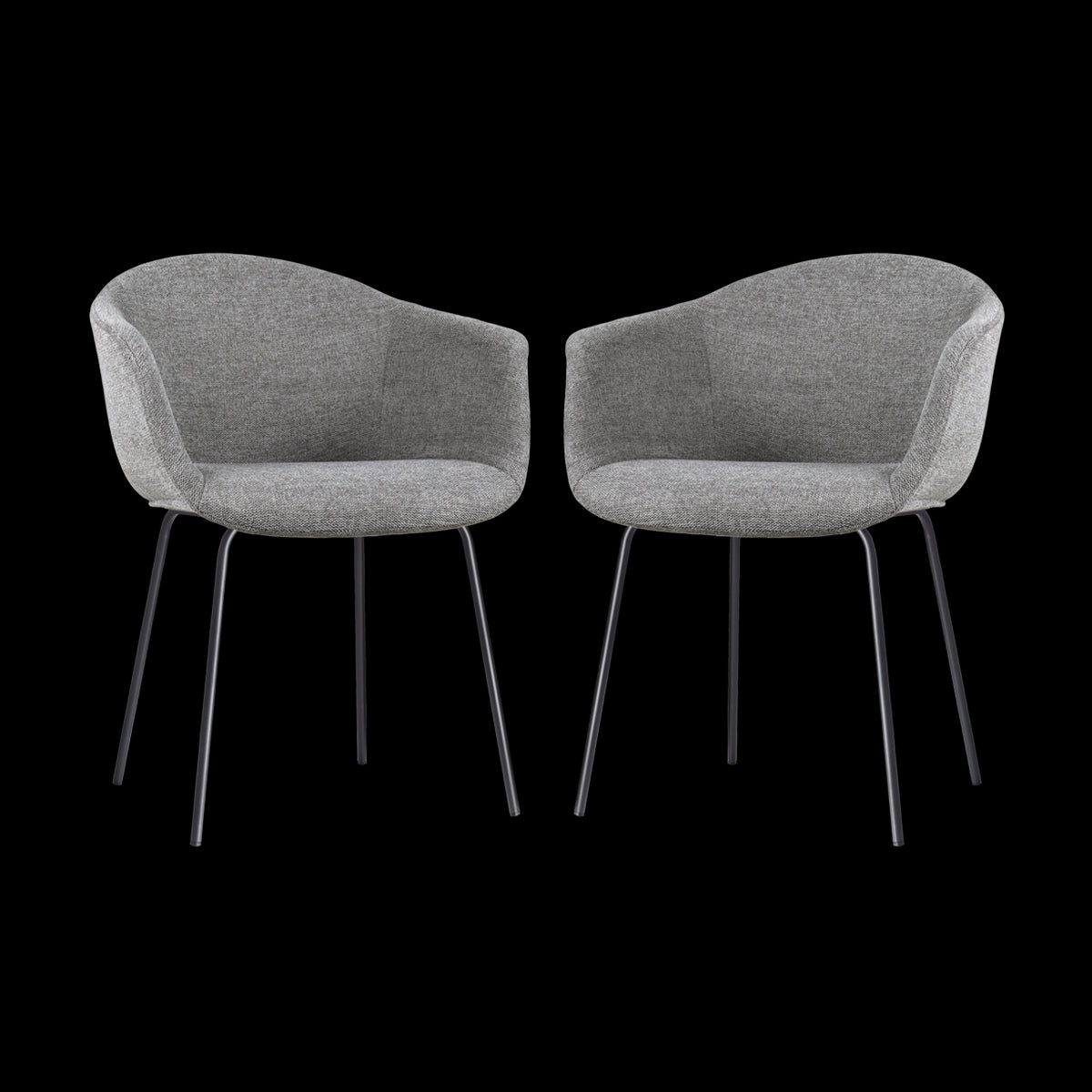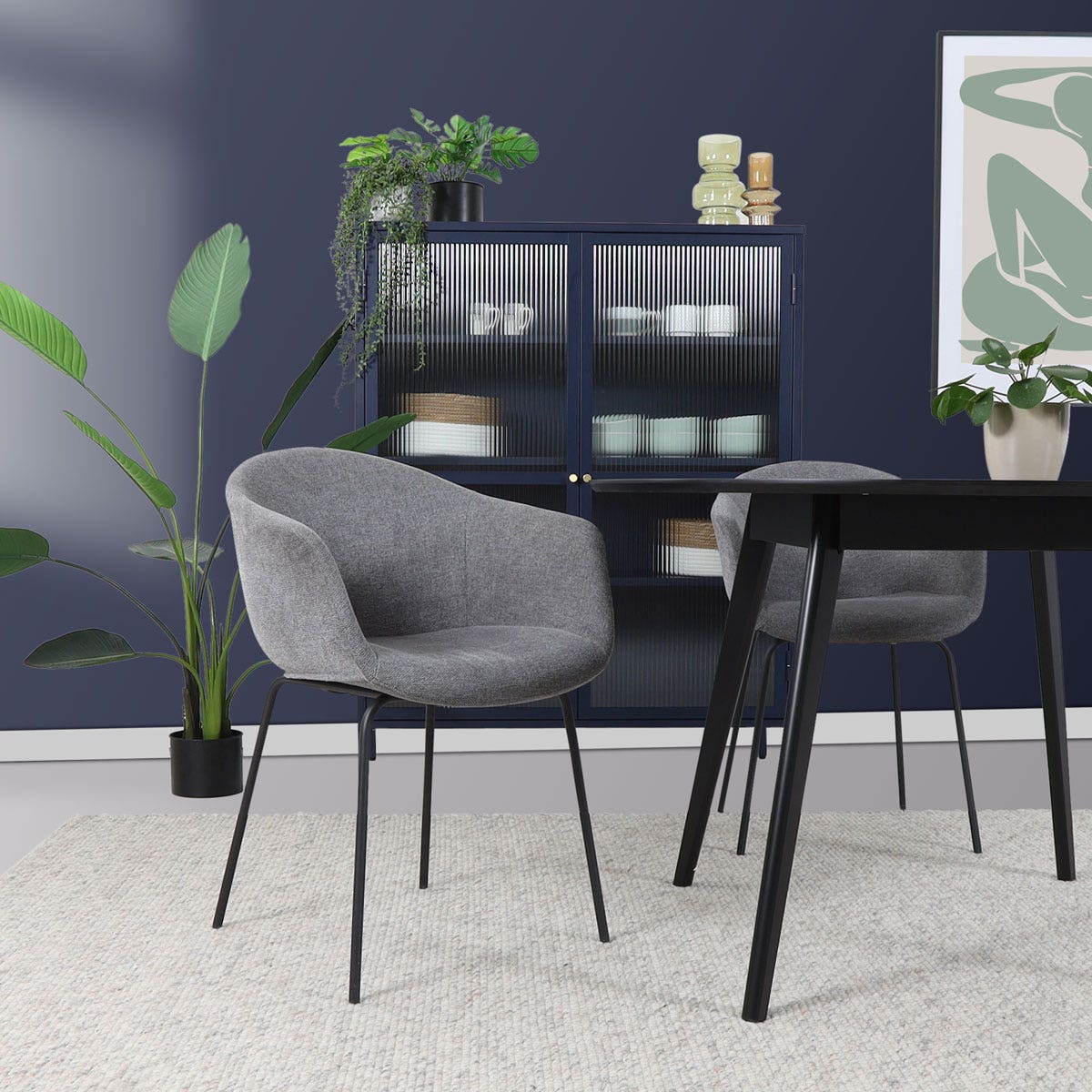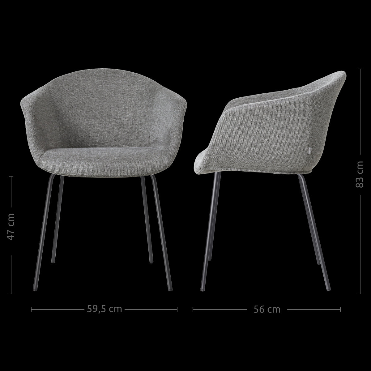 Deze eetkamerstoel heeft elegante uitstraling dankzij het ranke onderstel met vier ronde poten en een comfortabele zit door de ergonomisch gevormde kuipzitting. De stoffen bekleding zorgt voor een warm gevoel en maakt de eetkamer een uitnodigende plek voor vrienden en familie. Het stevige metalen onderstel zorgt ervoor dat de stoel stevig op de grond staat. De gestoffeerde zitting is voorzien van armleuningen om optimaal comfort te bieden tijdens gezellige diners of borrelavonden. In combinatie met de passieve zithouding van deze kuip zit je dus altijd ontspannen aan tafel. Maak een keuze uit één van de zes verschillende kleuren stoffen bekleding en geef jouw eethoek een stijlvolle upgrade.
