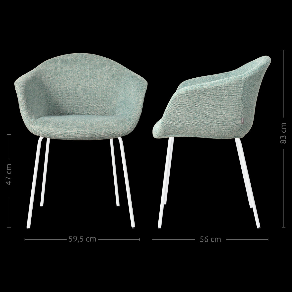Deze eetkamerstoel heeft elegante uitstraling dankzij het ranke onderstel met vier ronde poten en een comfortabele zit door de ergonomisch gevormde kuipzitting. De stoffen bekleding zorgt voor een warm gevoel en maakt de eetkamer een uitnodigende plek voor vrienden en familie. Het stevige metalen onderstel zorgt ervoor dat de stoel stevig op de grond staat. De gestoffeerde zitting is voorzien van armleuningen om optimaal comfort te bieden tijdens gezellige diners of borrelavonden. In combinatie met de passieve zithouding van deze kuip zit je dus altijd ontspannen aan tafel. Maak een keuze uit één van de zes verschillende kleuren stoffen bekleding en geef jouw eethoek een stijlvolle upgrade.