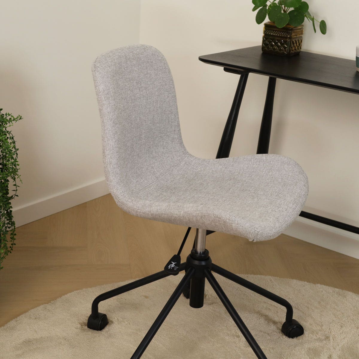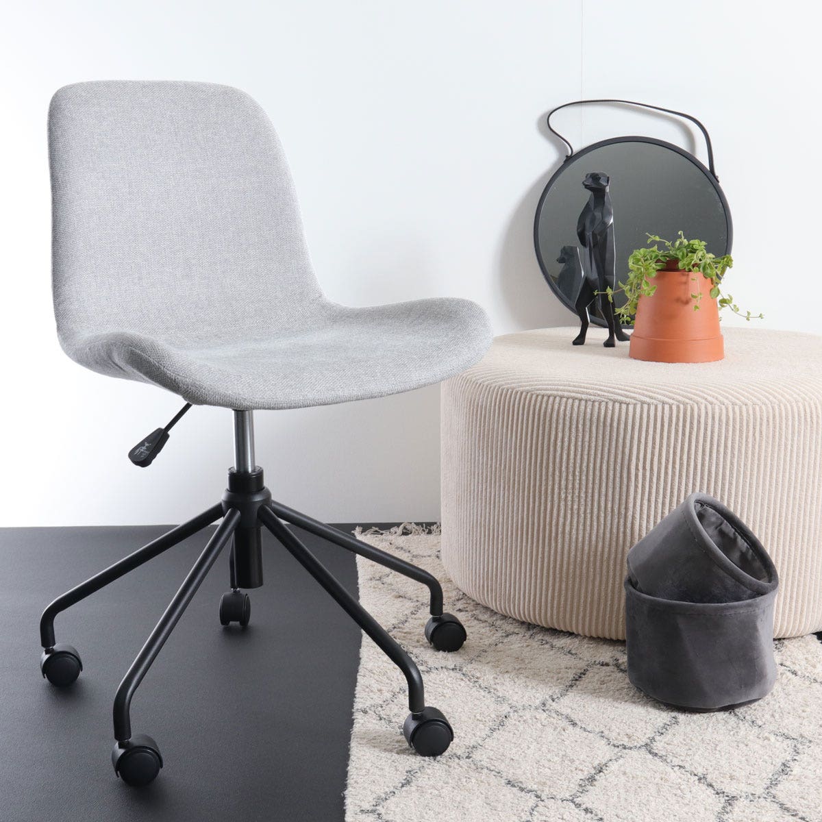 Deze bureaustoel is de ideale keuze als je op zoekt bent naar een exemplaar dat stijlvol, comfortabel en functioneel tegelijk is. Het metalen onderstel van deze bureaustoel is in hoogte verstelbaar, zodat je overal op de juiste zithoogte zit. De zitting kan 360 graden draaien op het onderstel en de stoel is voorzien van wieltjes, zodat je veel bewegingsvrijheid hebt aan je bureau. De zitting is bekleed met hoogwaardige stof voor een zachte zitervaring, en heeft subtiele rondingen en een gevleugeld zitvlak voor een hoog zitcomfort. Dankzij de actieve zithouding zit je rechtop achter je bureau. Maak een keuze uit de verschillende opties voor de bekleding, waaronder teddy en bouclé, en geef jouw werkruimte een stijlvolle upgrade.
