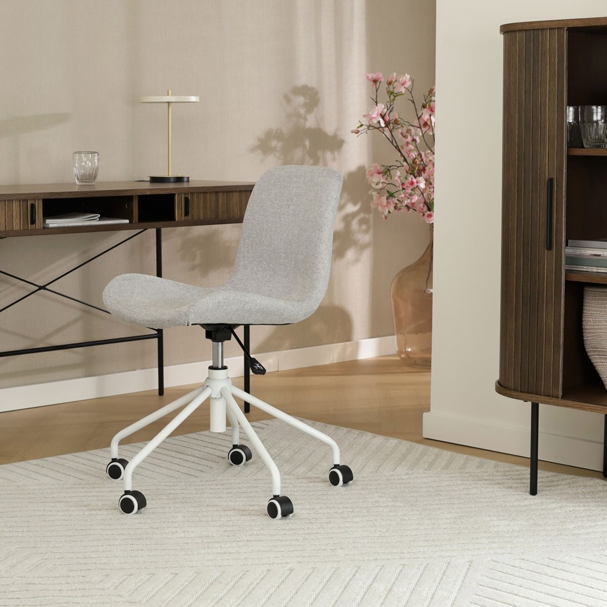 Deze bureaustoel is de ideale keuze als je op zoekt bent naar een exemplaar dat stijlvol, comfortabel en functioneel tegelijk is. Het metalen onderstel van deze bureaustoel is in hoogte verstelbaar, zodat je overal op de juiste zithoogte zit. De zitting kan 360 graden draaien op het onderstel en de stoel is voorzien van wieltjes, zodat je veel bewegingsvrijheid hebt aan je bureau. De zitting is bekleed met hoogwaardige stof voor een zachte zitervaring, en heeft subtiele rondingen en een gevleugeld zitvlak voor een hoog zitcomfort. Dankzij de actieve zithouding zit je rechtop achter je bureau. Maak een keuze uit de verschillende opties voor de bekleding, waaronder teddy en bouclé, en geef jouw werkruimte een stijlvolle upgrade.