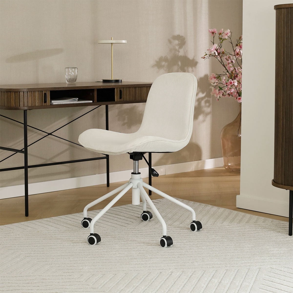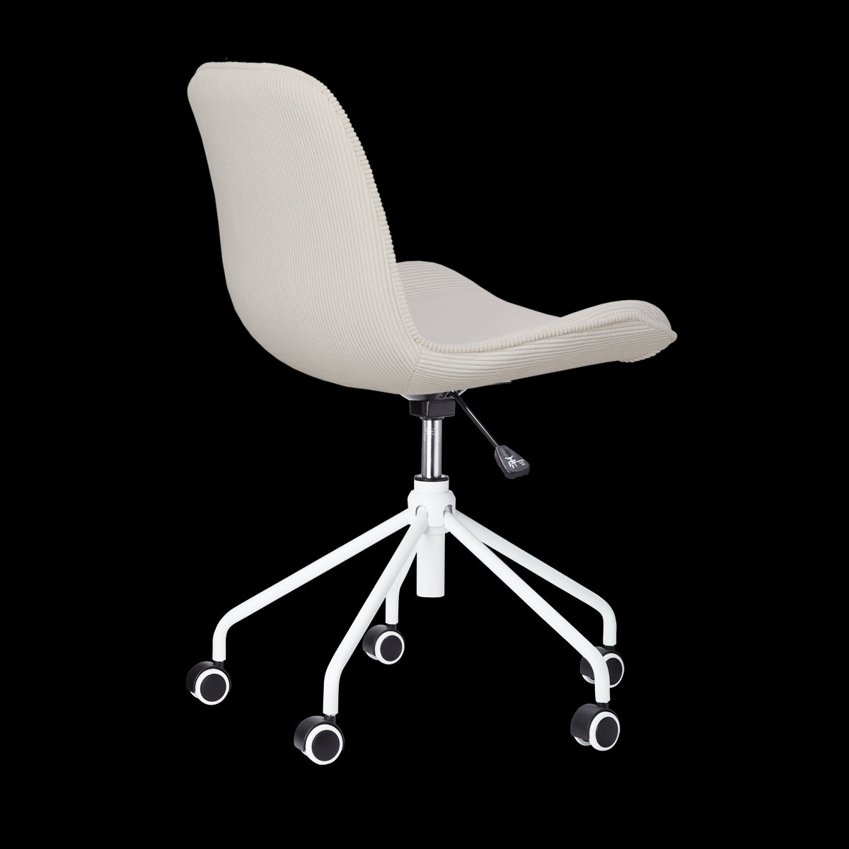 Deze bureaustoel is de ideale keuze als je op zoekt bent naar een exemplaar dat stijlvol, comfortabel en functioneel tegelijk is. Het metalen onderstel van deze bureaustoel is in hoogte verstelbaar, zodat je overal op de juiste zithoogte zit. De zitting kan 360 graden draaien op het onderstel en de stoel is voorzien van wieltjes, zodat je veel bewegingsvrijheid hebt aan je bureau. De zitting is bekleed met hoogwaardige stof voor een zachte zitervaring, en heeft subtiele rondingen en een gevleugeld zitvlak voor een hoog zitcomfort. Dankzij de actieve zithouding zit je rechtop achter je bureau. Maak een keuze uit de verschillende opties voor de bekleding, waaronder teddy en bouclé, en geef jouw werkruimte een stijlvolle upgrade.