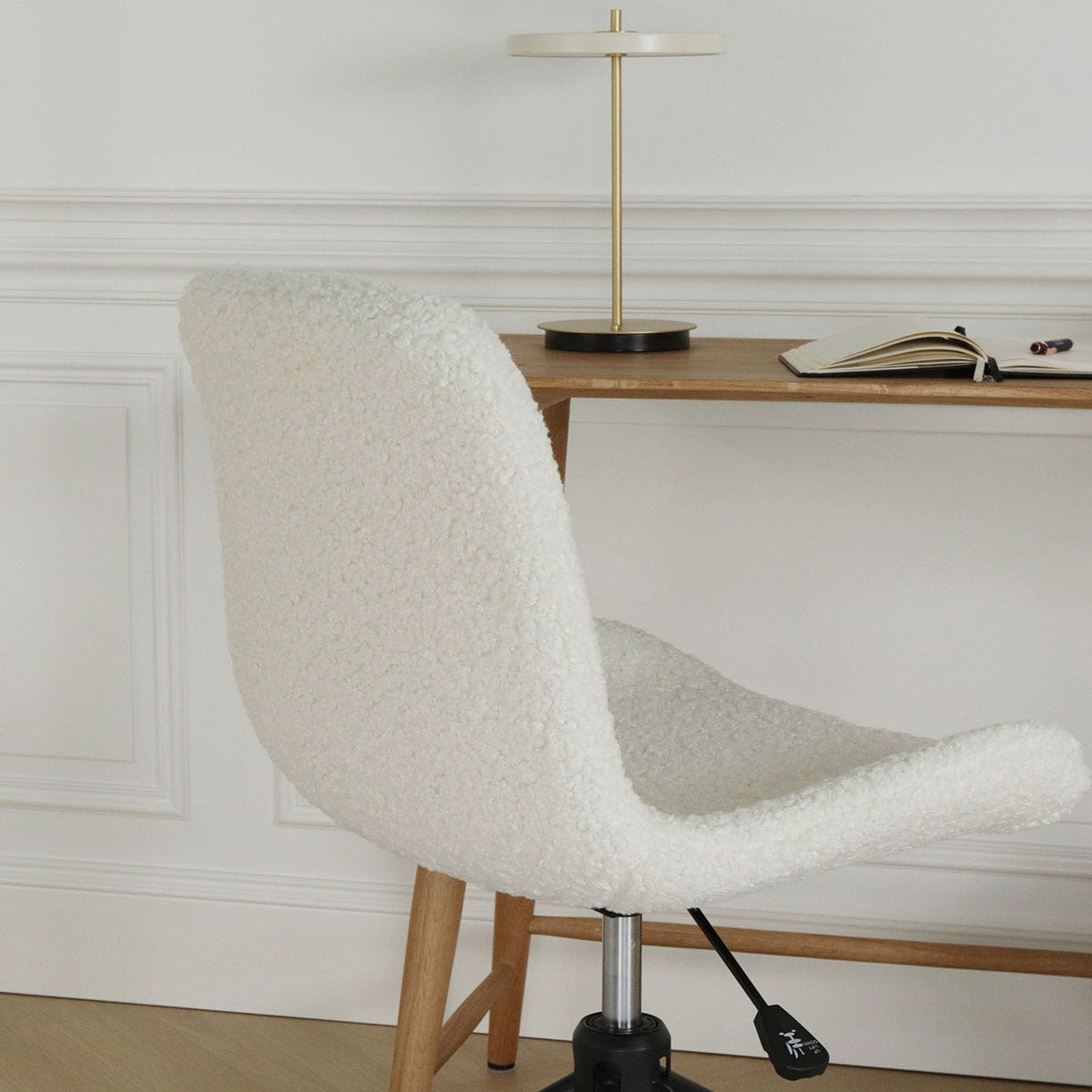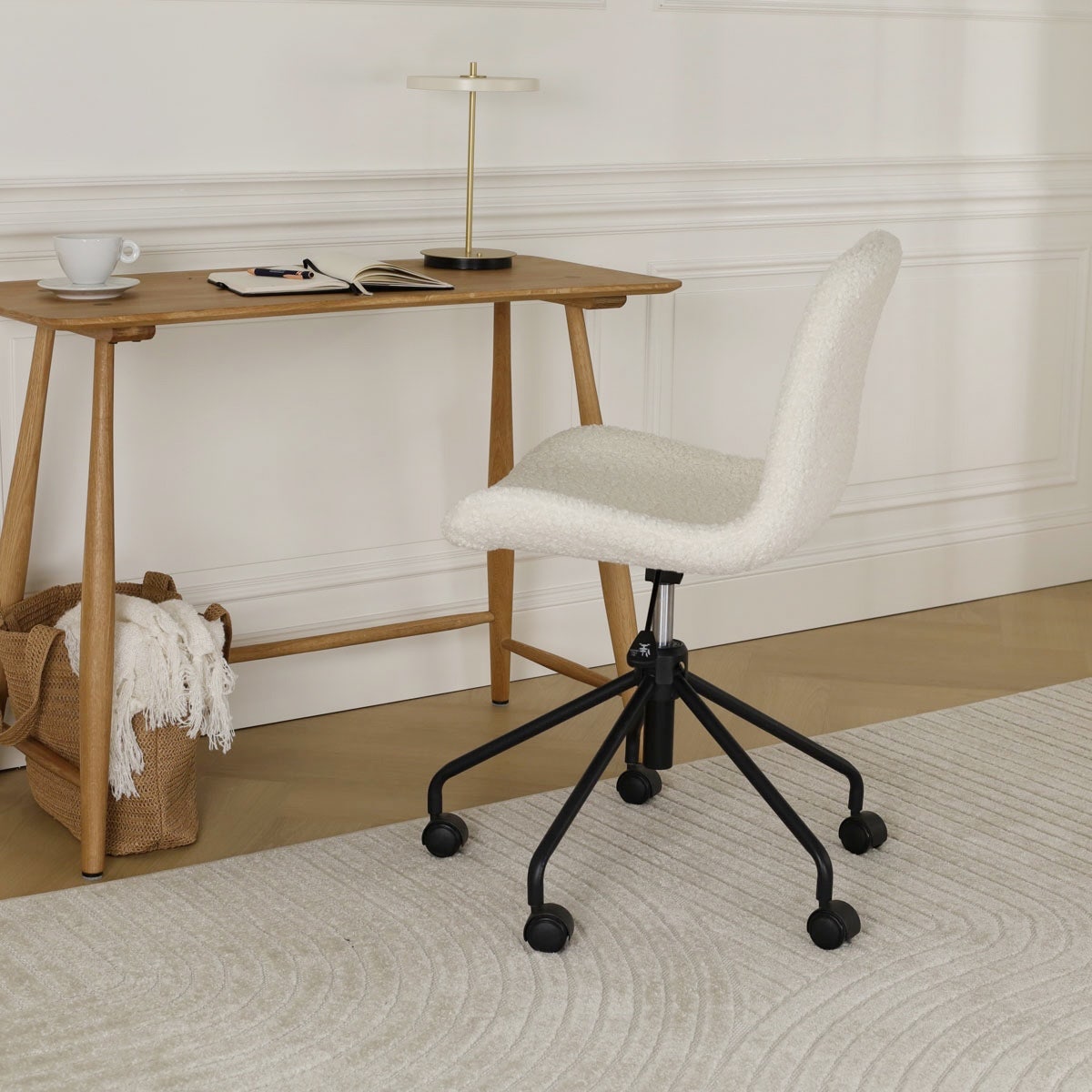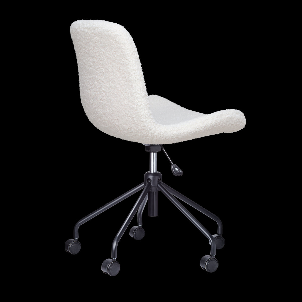 Deze bureaustoel is de ideale keuze als je op zoekt bent naar een exemplaar dat stijlvol, comfortabel en functioneel tegelijk is. Het metalen onderstel van deze bureaustoel is in hoogte verstelbaar, zodat je overal op de juiste zithoogte zit. De zitting kan 360 graden draaien op het onderstel en de stoel is voorzien van wieltjes, zodat je veel bewegingsvrijheid hebt aan je bureau. De zitting is bekleed met hoogwaardige stof voor een zachte zitervaring, en heeft subtiele rondingen en een gevleugeld zitvlak voor een hoog zitcomfort. Dankzij de actieve zithouding zit je rechtop achter je bureau. Maak een keuze uit de verschillende opties voor de bekleding, waaronder teddy en bouclé, en geef jouw werkruimte een stijlvolle upgrade.