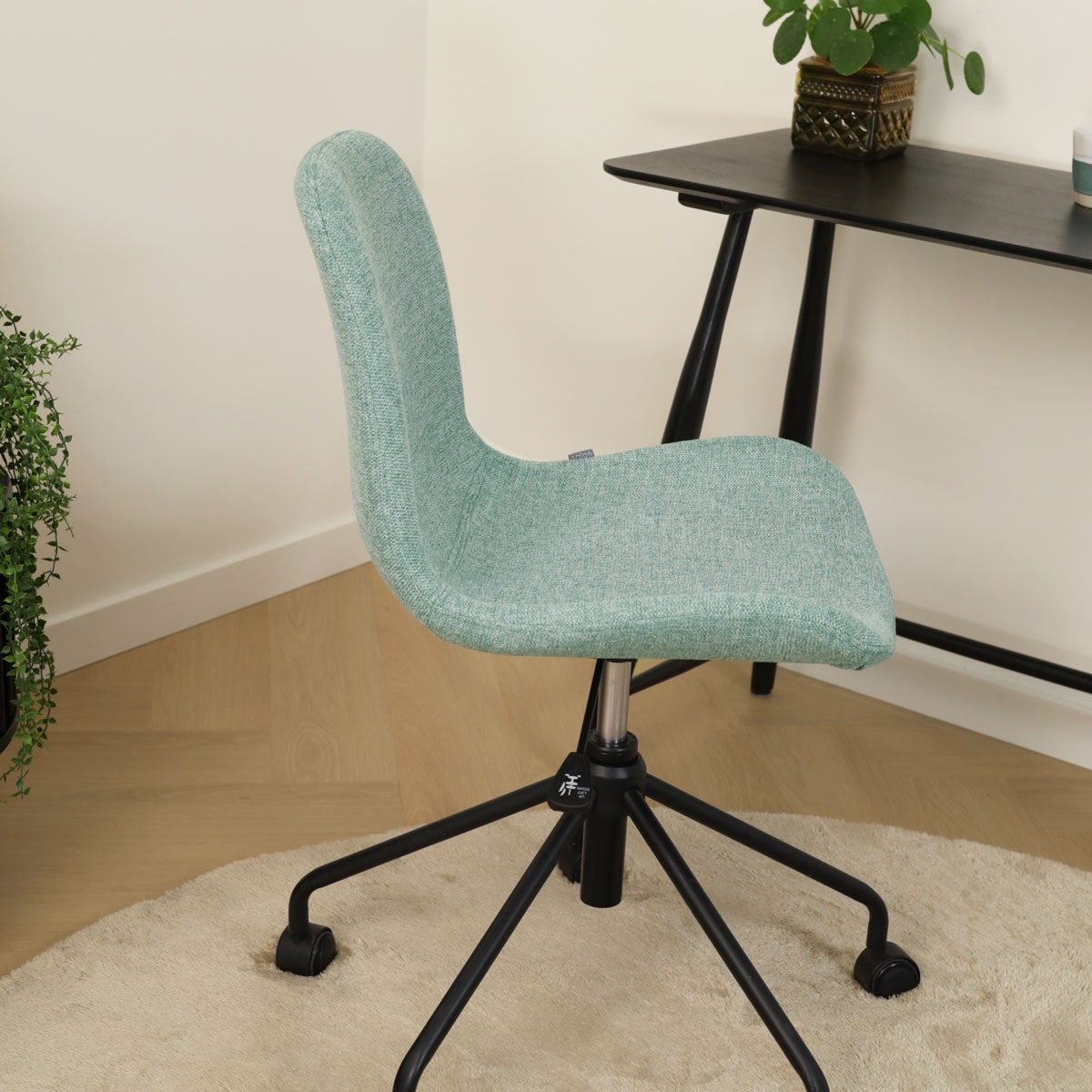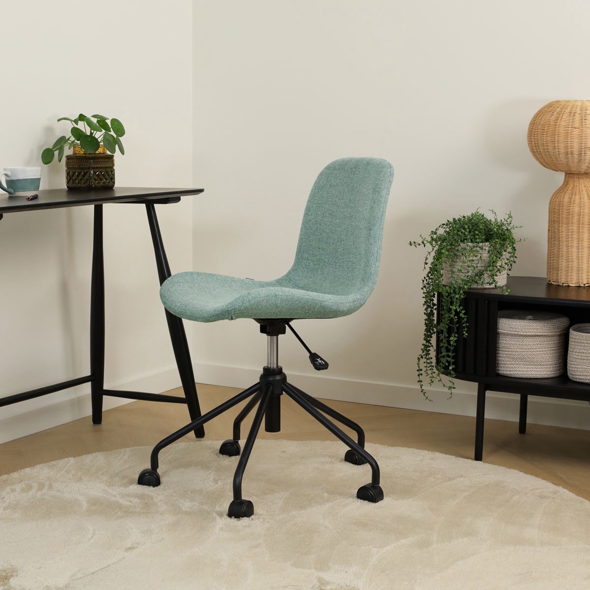 Deze bureaustoel is de ideale keuze als je op zoekt bent naar een exemplaar dat stijlvol, comfortabel en functioneel tegelijk is. Het metalen onderstel van deze bureaustoel is in hoogte verstelbaar, zodat je overal op de juiste zithoogte zit. De zitting kan 360 graden draaien op het onderstel en de stoel is voorzien van wieltjes, zodat je veel bewegingsvrijheid hebt aan je bureau. De zitting is bekleed met hoogwaardige stof voor een zachte zitervaring, en heeft subtiele rondingen en een gevleugeld zitvlak voor een hoog zitcomfort. Dankzij de actieve zithouding zit je rechtop achter je bureau. Maak een keuze uit de verschillende opties voor de bekleding, waaronder teddy en bouclé, en geef jouw werkruimte een stijlvolle upgrade.