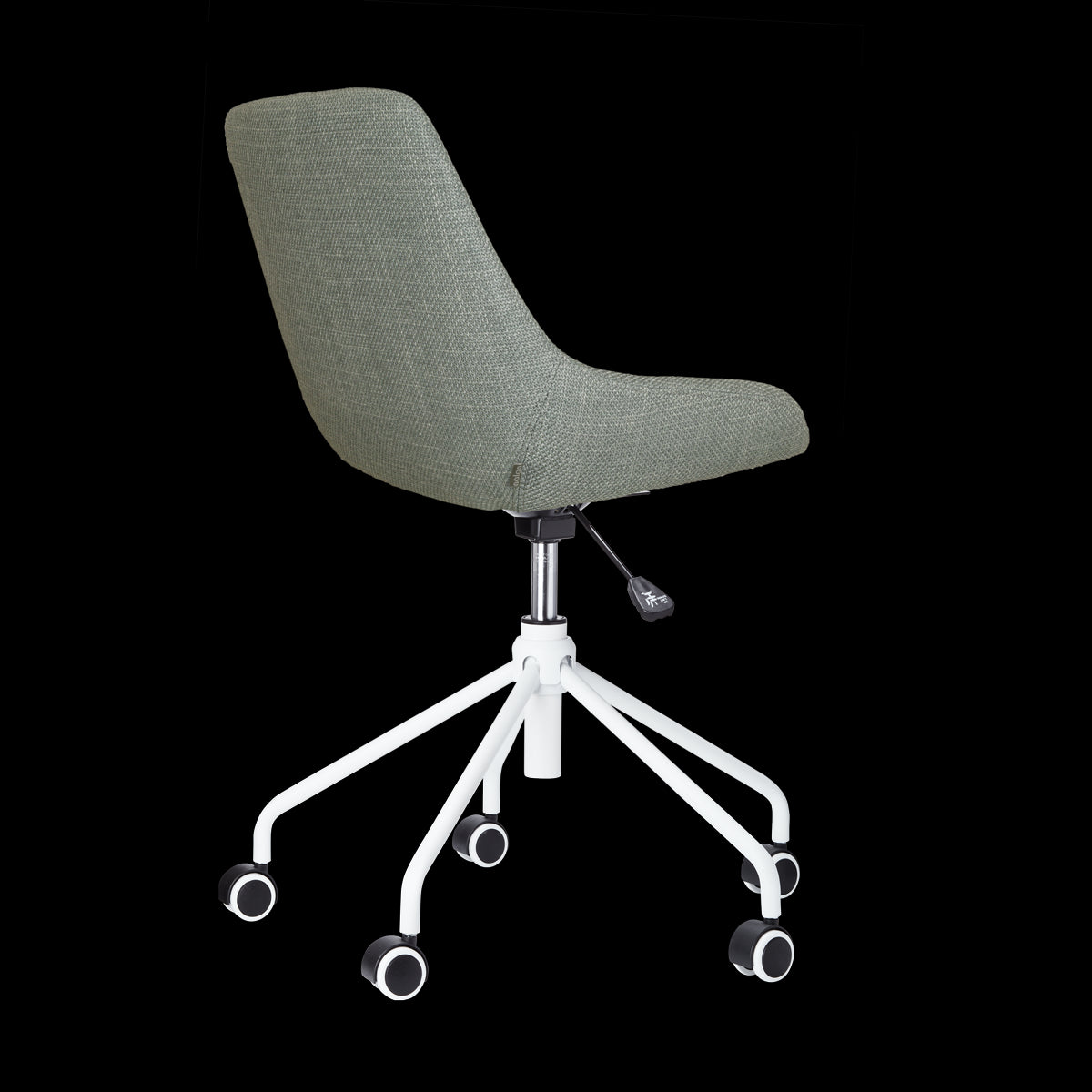 De Nout-Isa bureaustoel in een stijlvolle saliegroene bekleding en een strak wit onderstel van Nolon is de perfecte aanvulling voor je thuiswerkplek.