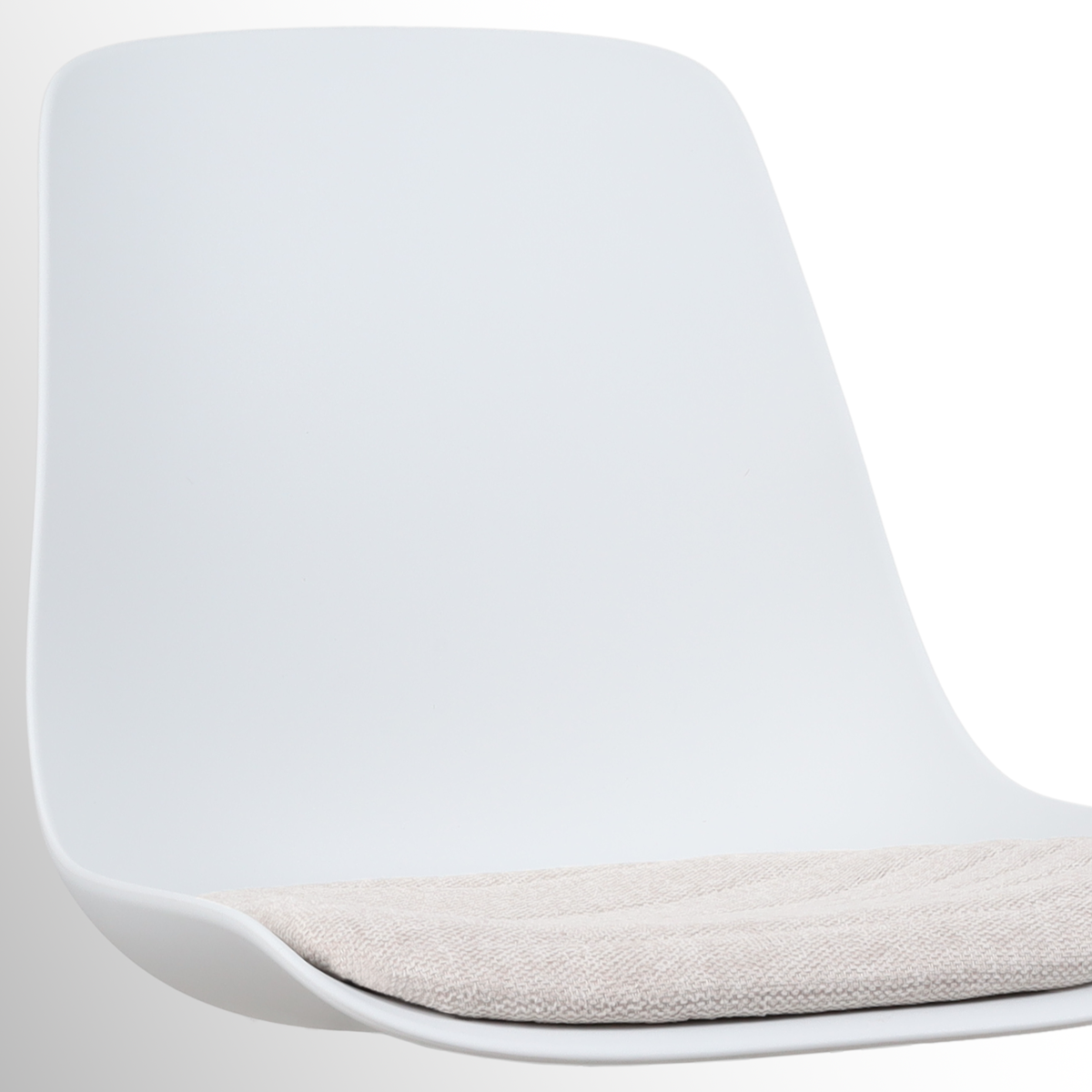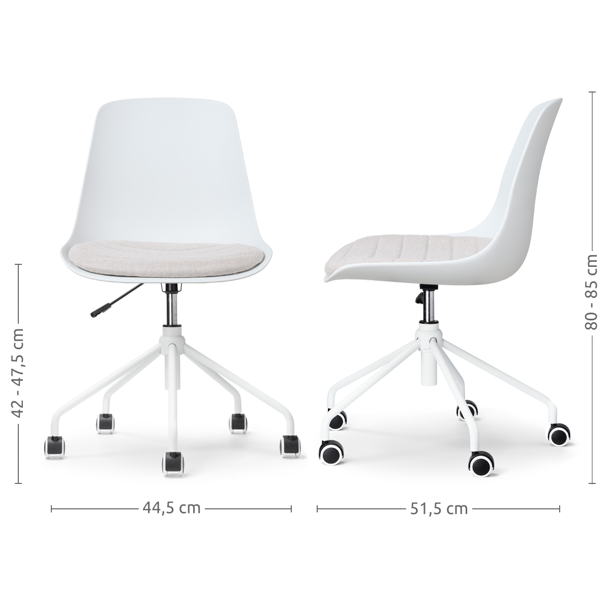 Dit moderne ontwerp heeft een duurzame kunststof zitting en een metalen onderstel met wieltjes. De zithoogte van de stoel is verstelbaar zodat je overal de juiste zithouding kan aannemen en de zitting draait 360 graden op het onderstel. De zitting is gemaakt van door en door gekleurd kunststof, waardoor de stoel zeer geschikt is voor intensief gebruik en bestand is tegen krassen en beschadigingen. Het vaste zitkussen is bekleed met zachte stof en zorgt ervoor dat je comfortabel zit je werken of studeren. Kies uit vijf verschillende kleuropties voor het vaste zitkussen en maak een keuze uit zwart en wit voor het onderstel en de kuipzitting. Zo kan je de Nout-Liv eetkamerstoel helemaal aan jouw interieurwensen aanpassen!