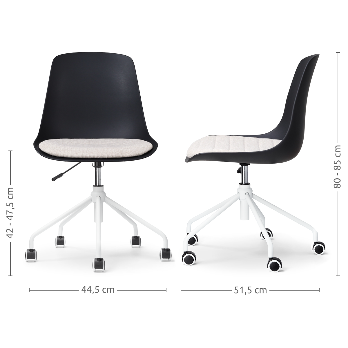 - De zithoogte is verstelbaar van 41 tot 46,5 cm