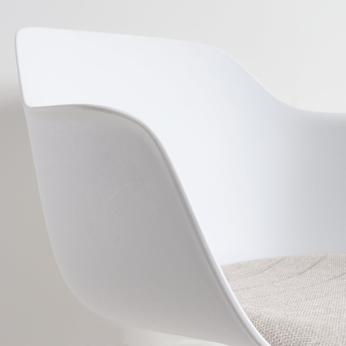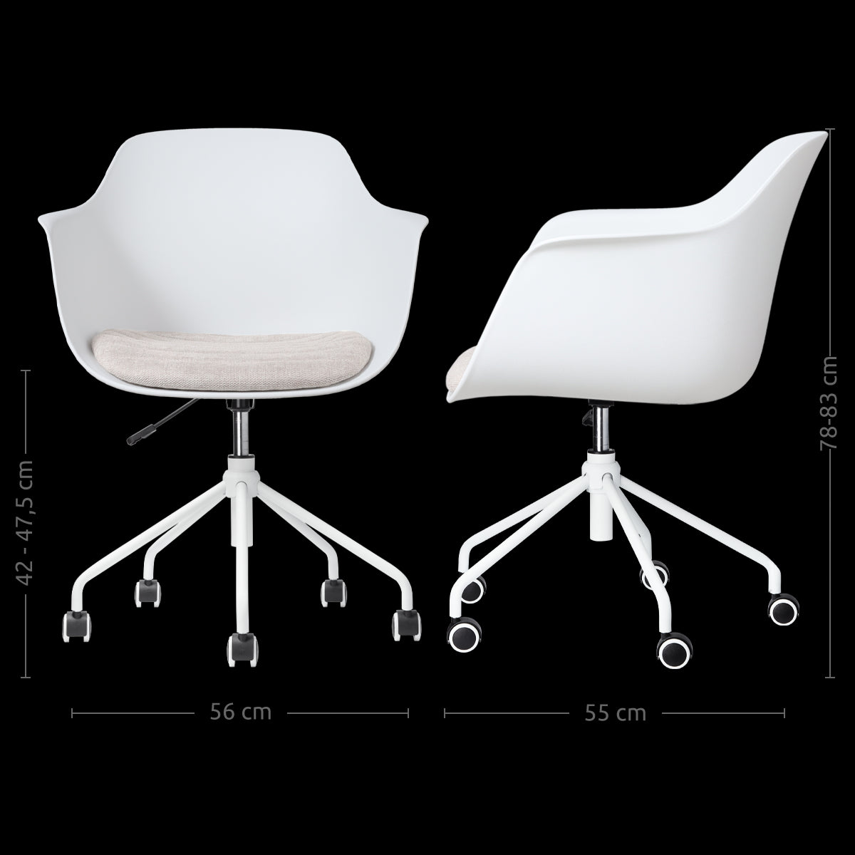 De zitting van de bureaustoel is verkrijgbaar in het kunststof en je kunt kiezen uit verschillende kleuren vaste zitkussens in de stoel. Bovendien heeft de zitting armleuningen, voor net nog iets meer comfort. Het onderstel is gemaakt van metaal en is in hoogte verstelbaar. Kortom, een moderne bureaustoel, waarin je ook lekker zit tijdens lange vergaderingen.