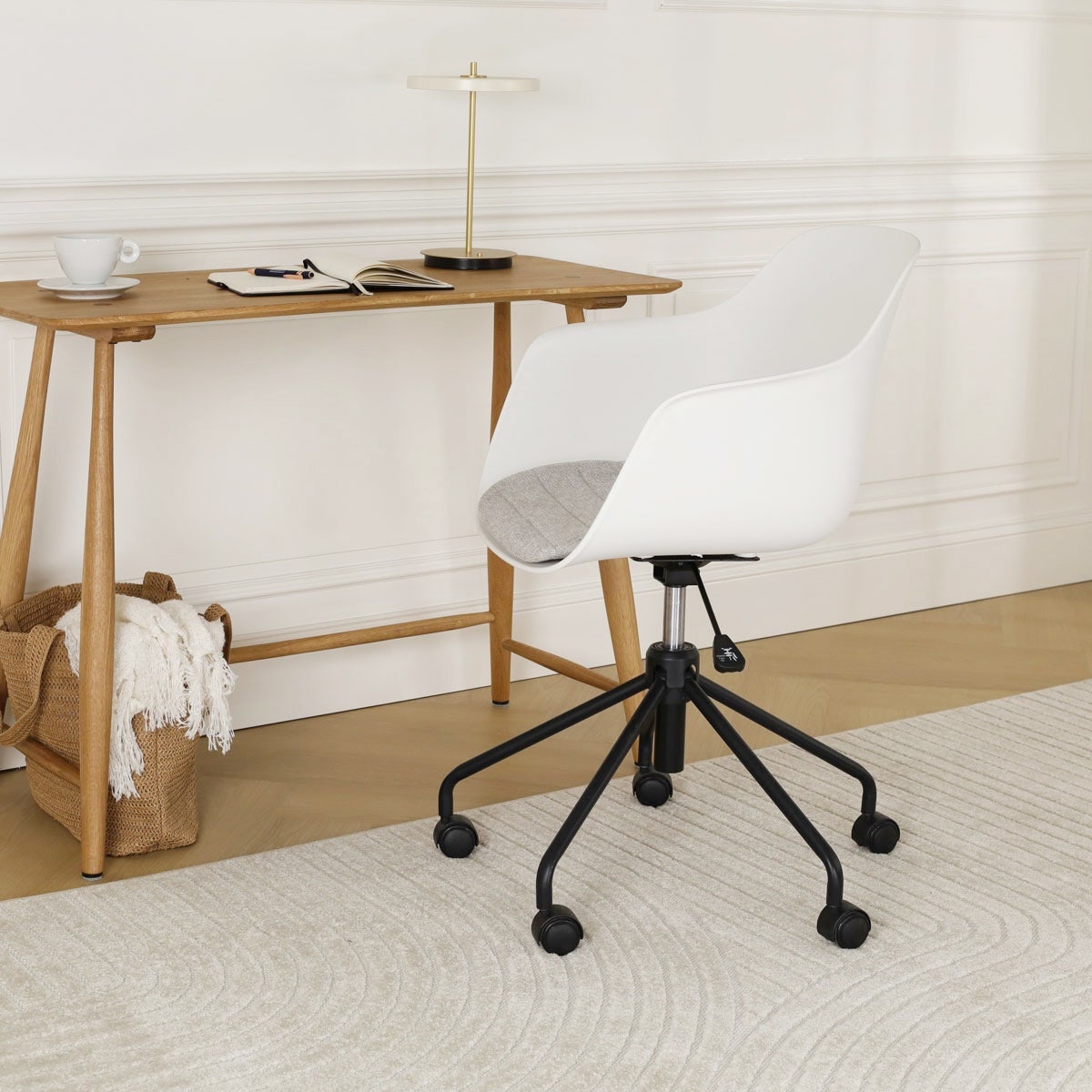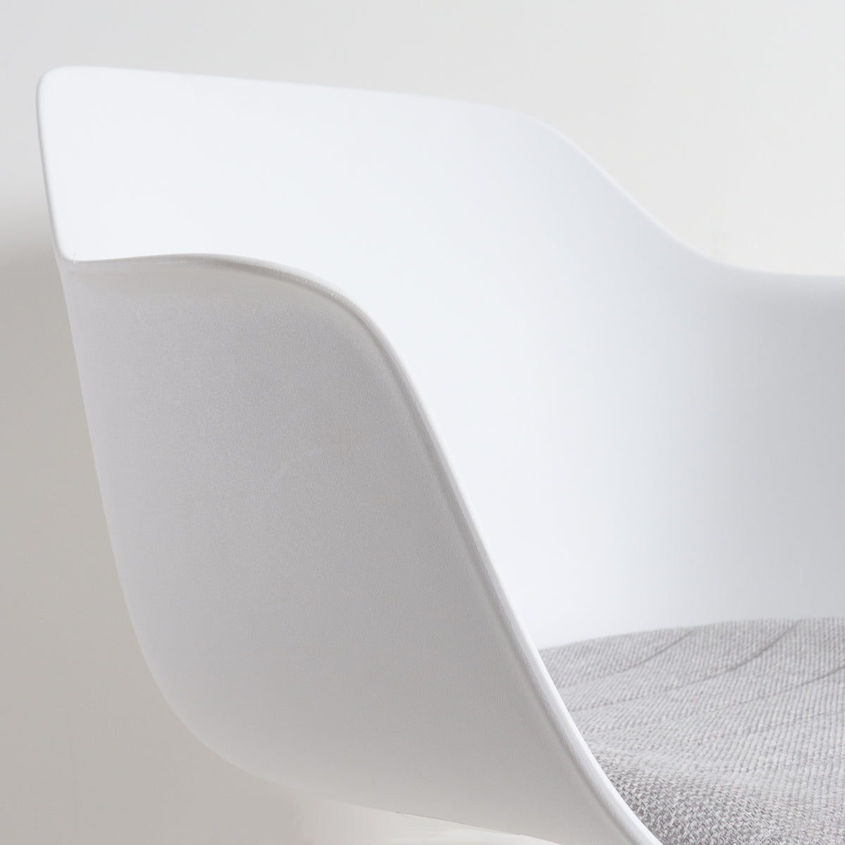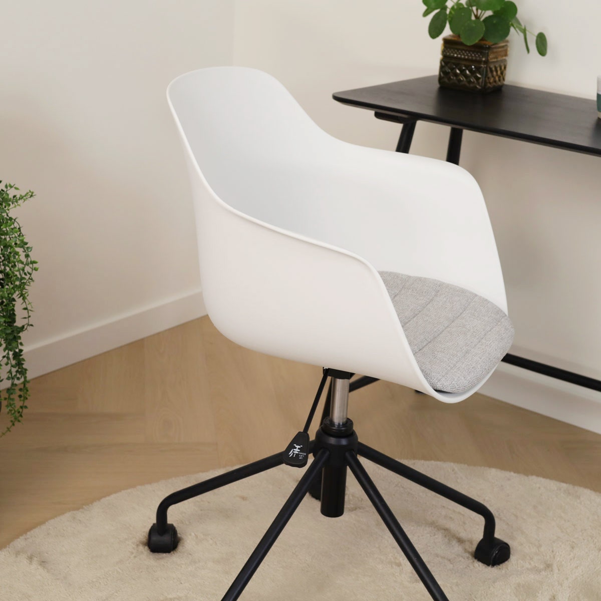De zitting van de bureaustoel is verkrijgbaar in het kunststof en je kunt kiezen uit verschillende kleuren vaste zitkussens in de stoel. Bovendien heeft de zitting armleuningen, voor net nog iets meer comfort. Het onderstel is gemaakt van metaal en is in hoogte verstelbaar. Kortom, een moderne bureaustoel, waarin je ook lekker zit tijdens lange vergaderingen.