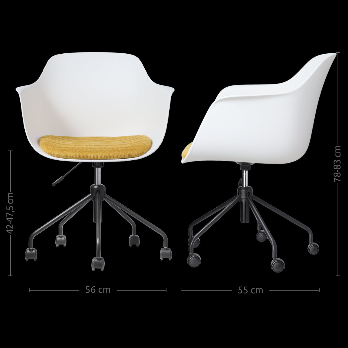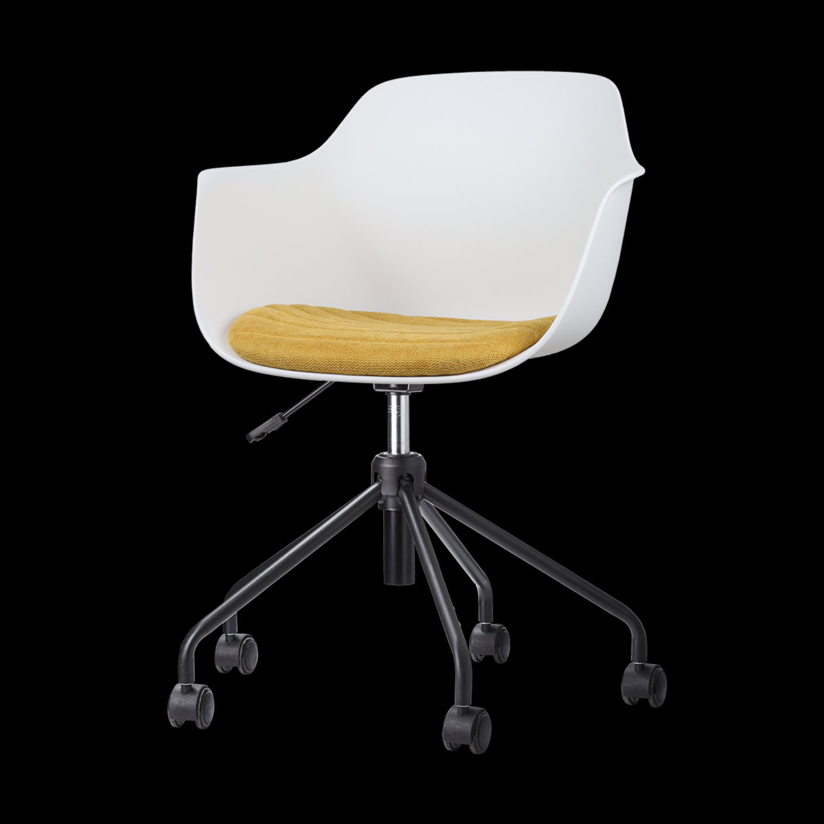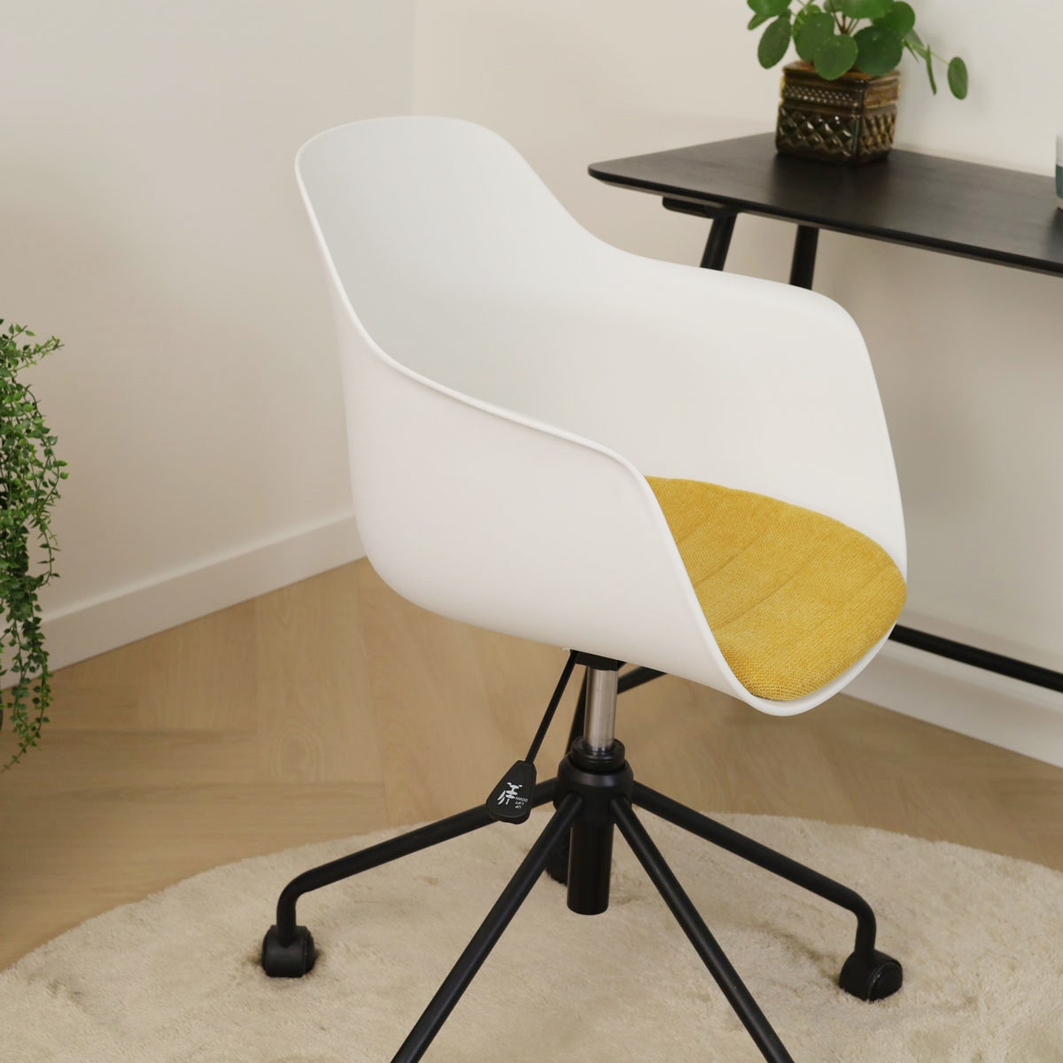 De zitting van de bureaustoel is verkrijgbaar in het kunststof en je kunt kiezen uit verschillende kleuren vaste zitkussens in de stoel. Bovendien heeft de zitting armleuningen, voor net nog iets meer comfort. Het onderstel is gemaakt van metaal en is in hoogte verstelbaar. Kortom, een moderne bureaustoel, waarin je ook lekker zit tijdens lange vergaderingen.