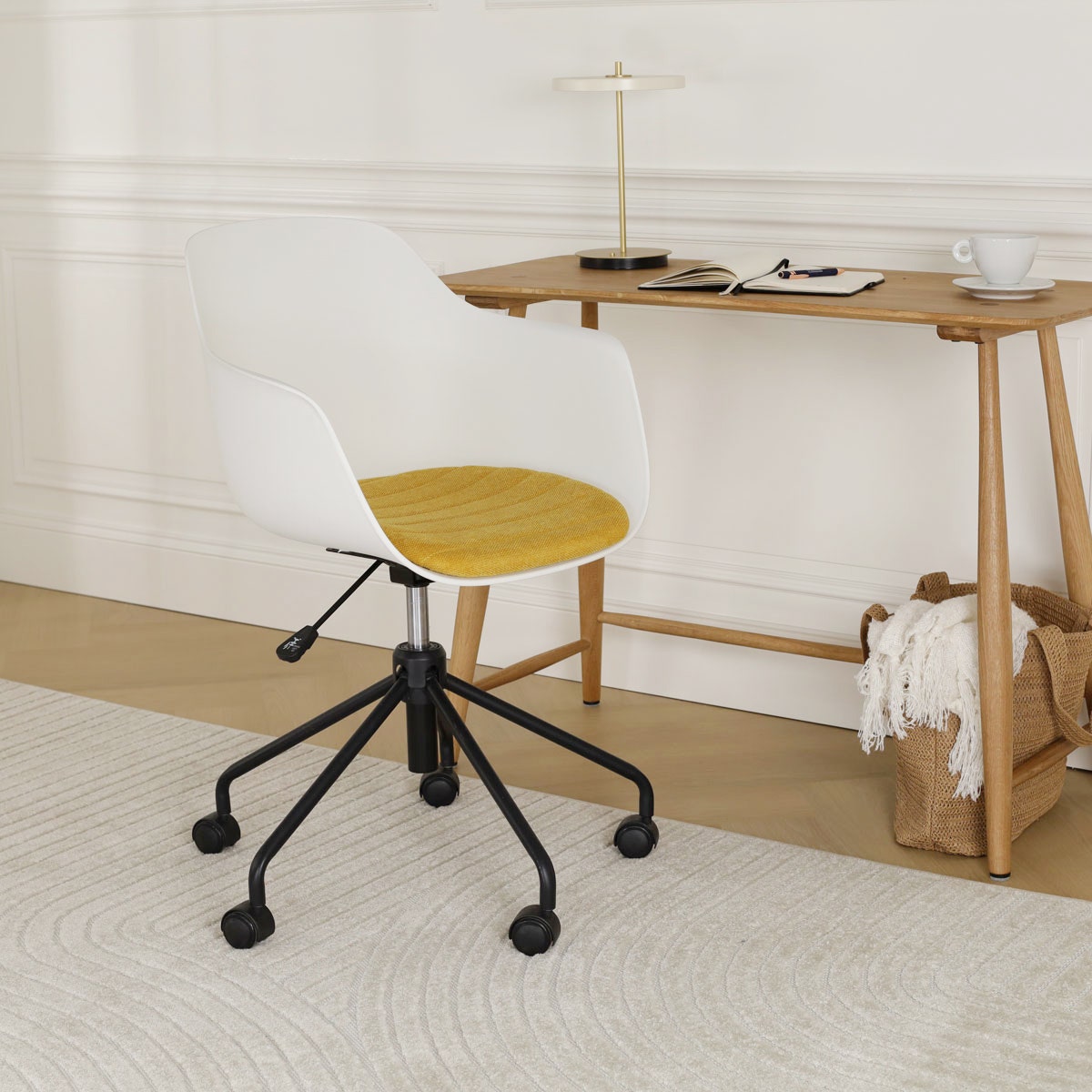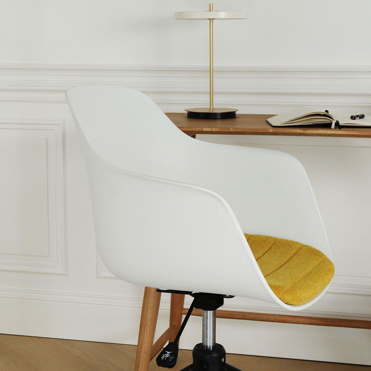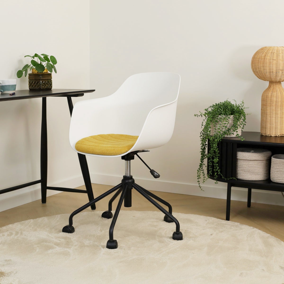 De zitting van de bureaustoel is verkrijgbaar in het kunststof en je kunt kiezen uit verschillende kleuren vaste zitkussens in de stoel. Bovendien heeft de zitting armleuningen, voor net nog iets meer comfort. Het onderstel is gemaakt van metaal en is in hoogte verstelbaar. Kortom, een moderne bureaustoel, waarin je ook lekker zit tijdens lange vergaderingen.