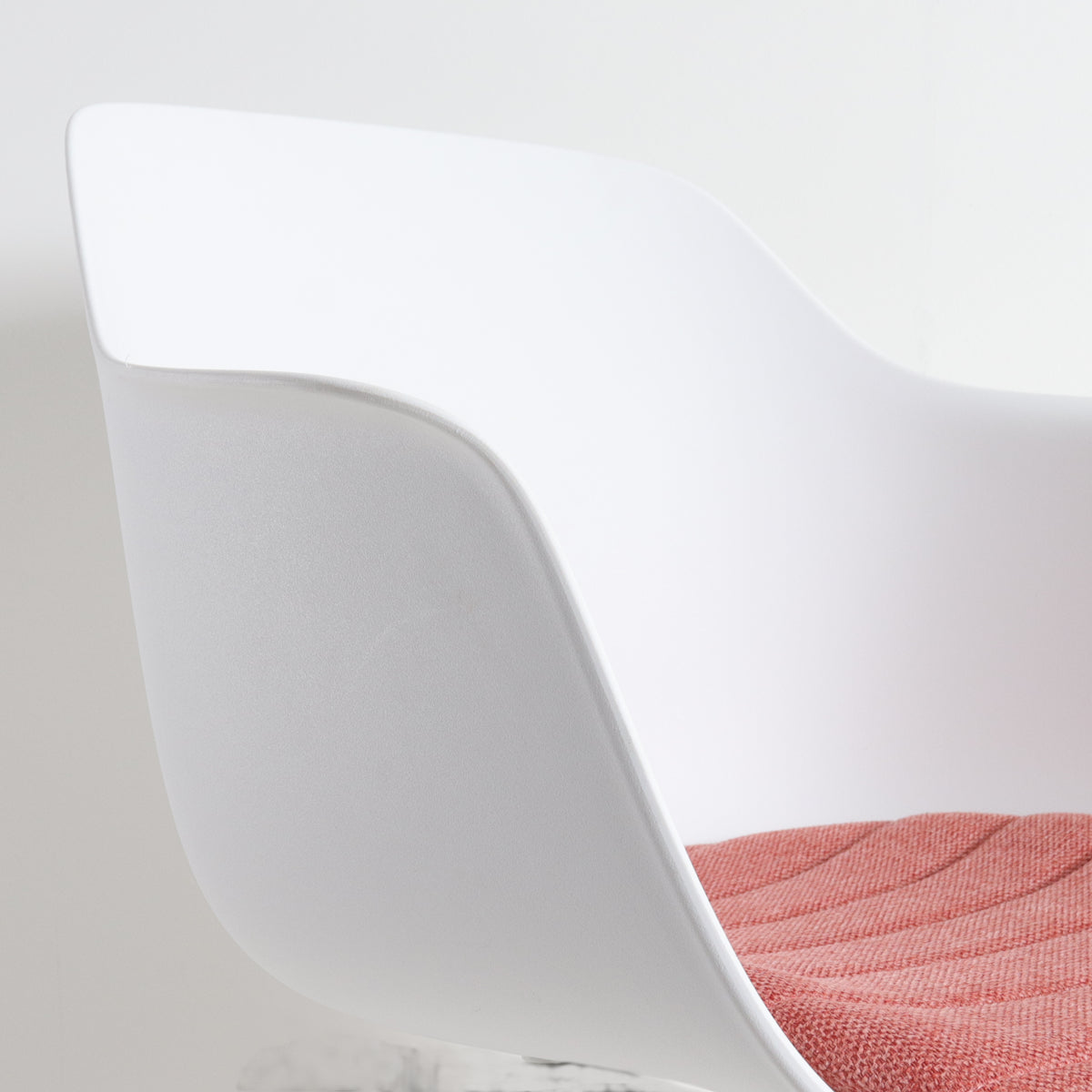 De zitting van de bureaustoel is verkrijgbaar in het kunststof en je kunt kiezen uit verschillende kleuren vaste zitkussens in de stoel. Bovendien heeft de zitting armleuningen, voor net nog iets meer comfort. Het onderstel is gemaakt van metaal en is in hoogte verstelbaar. Kortom, een moderne bureaustoel, waarin je ook lekker zit tijdens lange vergaderingen.