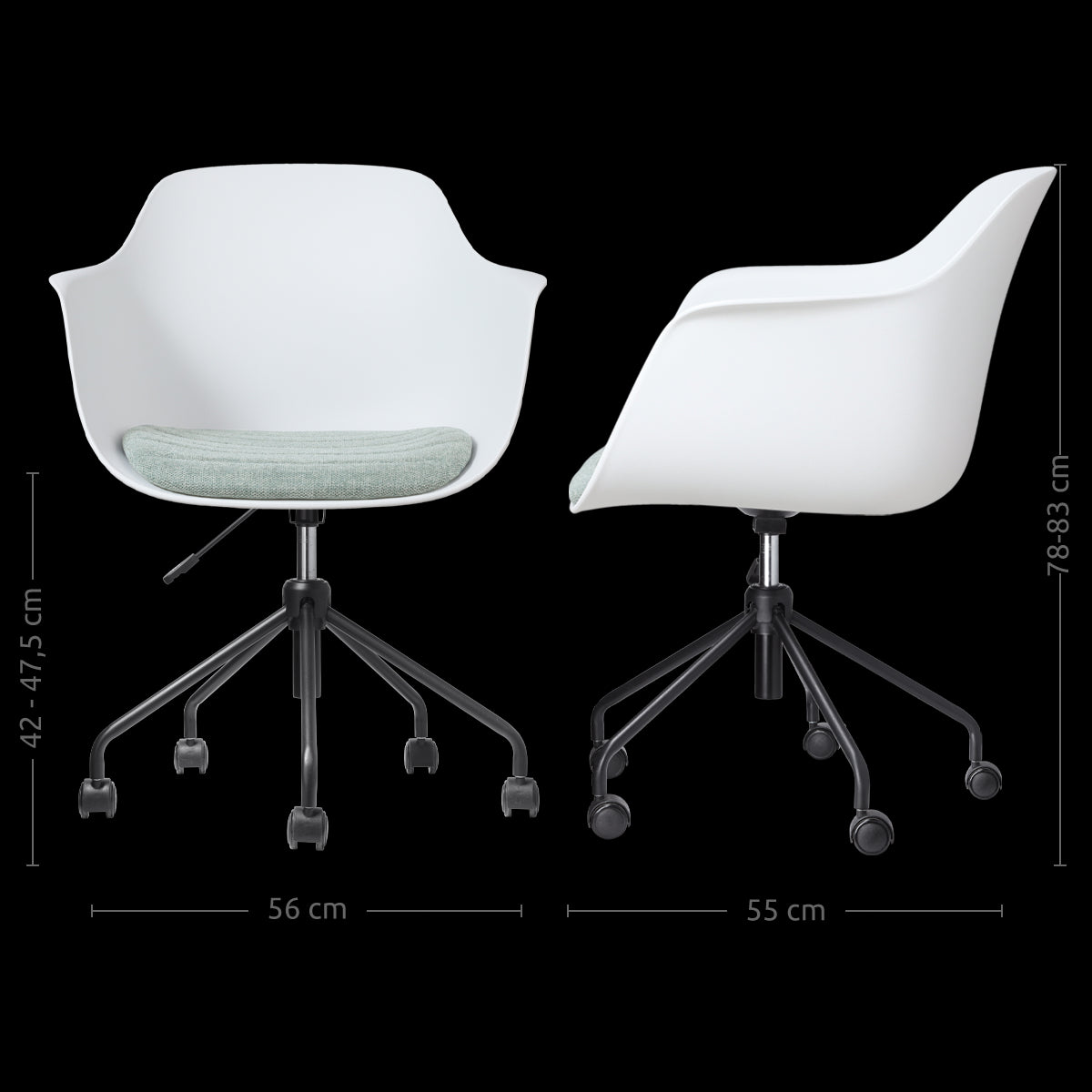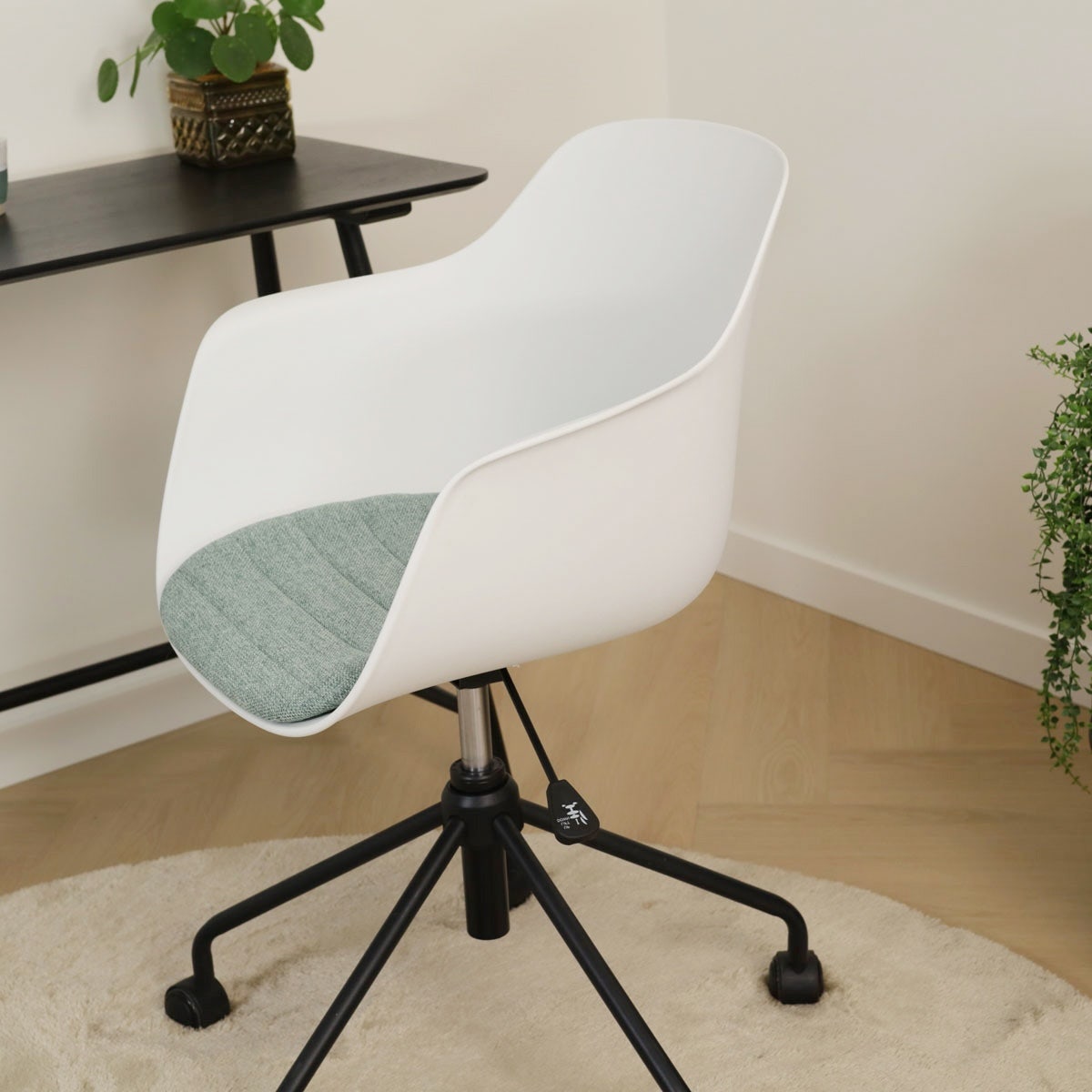 De zitting van de bureaustoel is verkrijgbaar in het kunststof en je kunt kiezen uit verschillende kleuren vaste zitkussens in de stoel. Bovendien heeft de zitting armleuningen, voor net nog iets meer comfort. Het onderstel is gemaakt van metaal en is in hoogte verstelbaar. Kortom, een moderne bureaustoel, waarin je ook lekker zit tijdens lange vergaderingen.