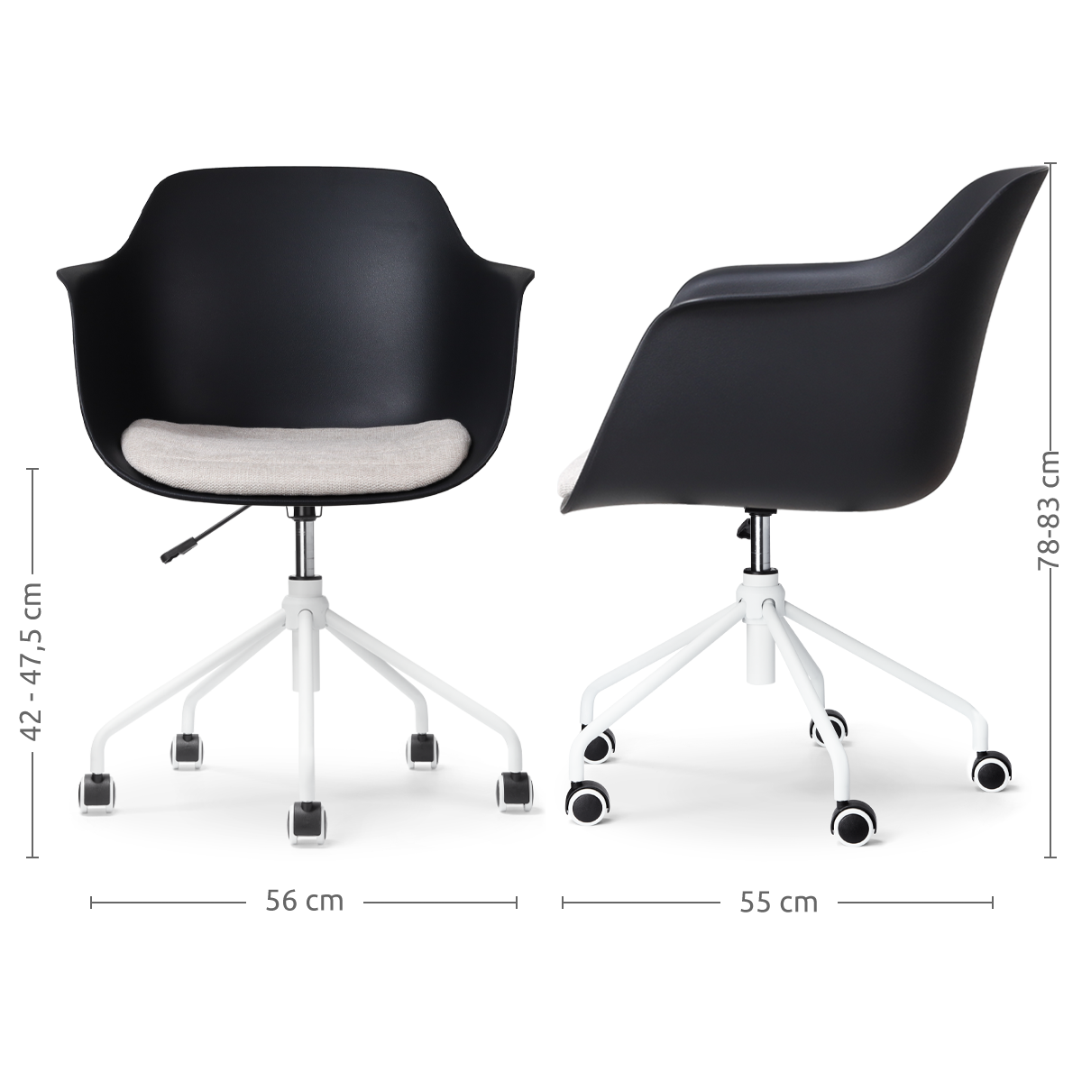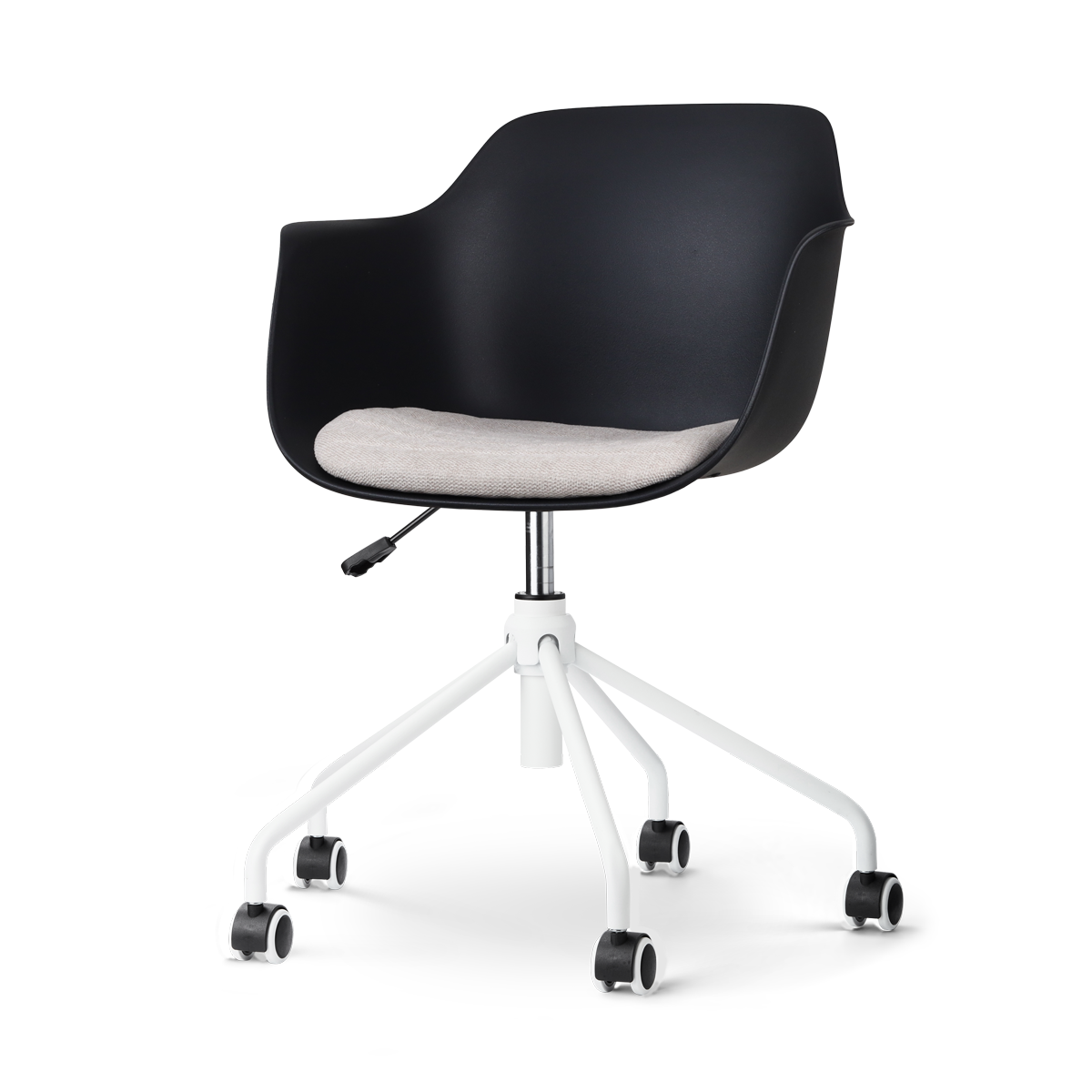 De Nout bureaustoel van Nolon is niet zomaar een standaard bureaustoel. Nout is een moderne bureaustoel, waar je zeker wel op wilt (thuis) werken of studeren. De zitting van de bureaustoel is verkrijgbaar in het kunststof en je kunt kiezen uit verschillende kleuren vaste zitkussens in de stoel. Bovendien heeft de zitting armleuningen, voor net nog iets meer comfort. Het onderstel is gemaakt van metaal en is in hoogte verstelbaar. Kortom, een moderne bureaustoel, waarin je ook lekker zit tijdens lange vergaderingen.
