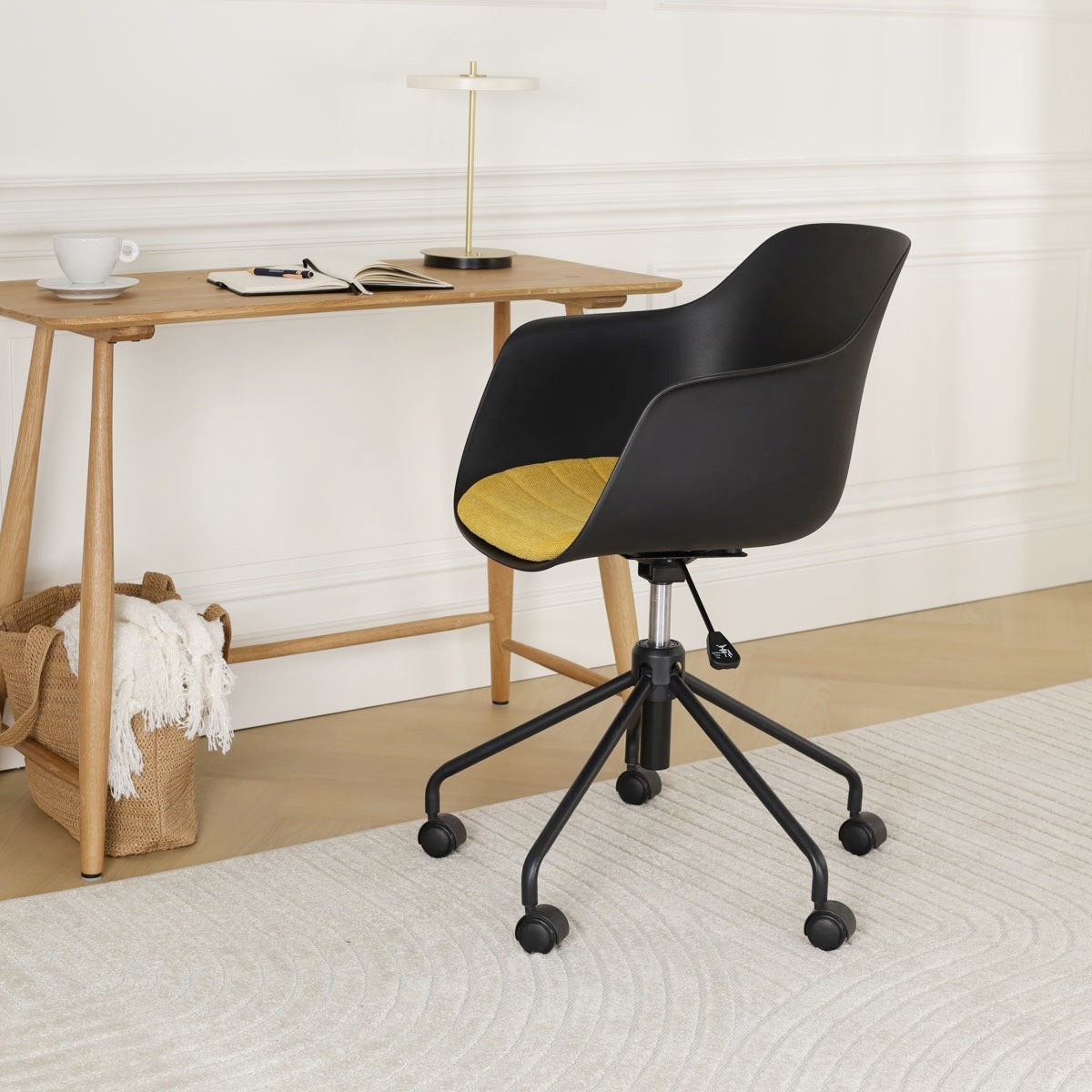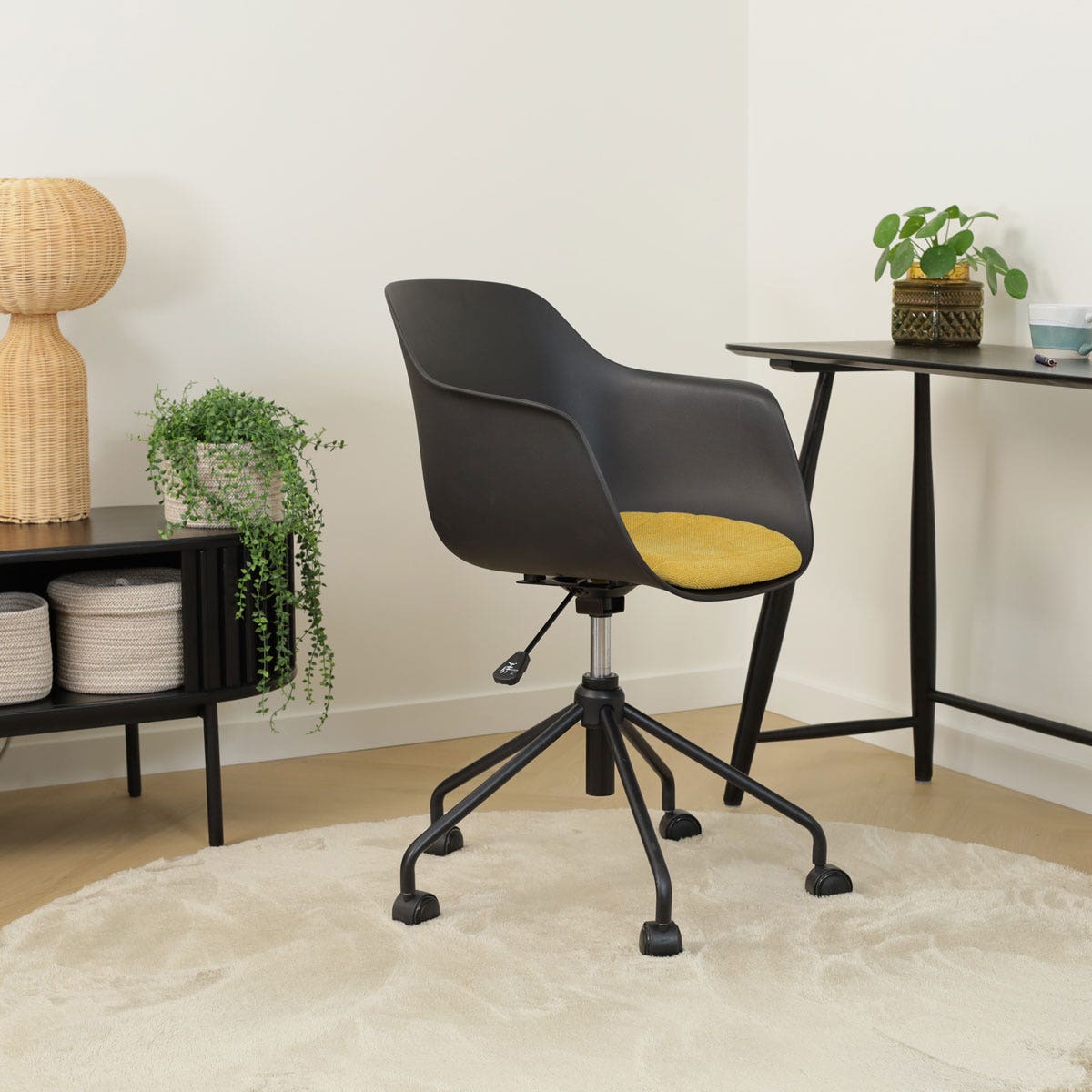 Nout is een moderne bureaustoel, waar je zeker wel op wilt (thuis) werken of studeren. De zitting van de bureaustoel is verkrijgbaar in het kunststof en je kunt kiezen uit verschillende kleuren vaste zitkussens in de stoel. Het onderstel is gemaakt van metaal en is in hoogte verstelbaar. Kortom, een moderne bureaustoel, waarin je ook lekker zit tijdens lange vergaderingen.