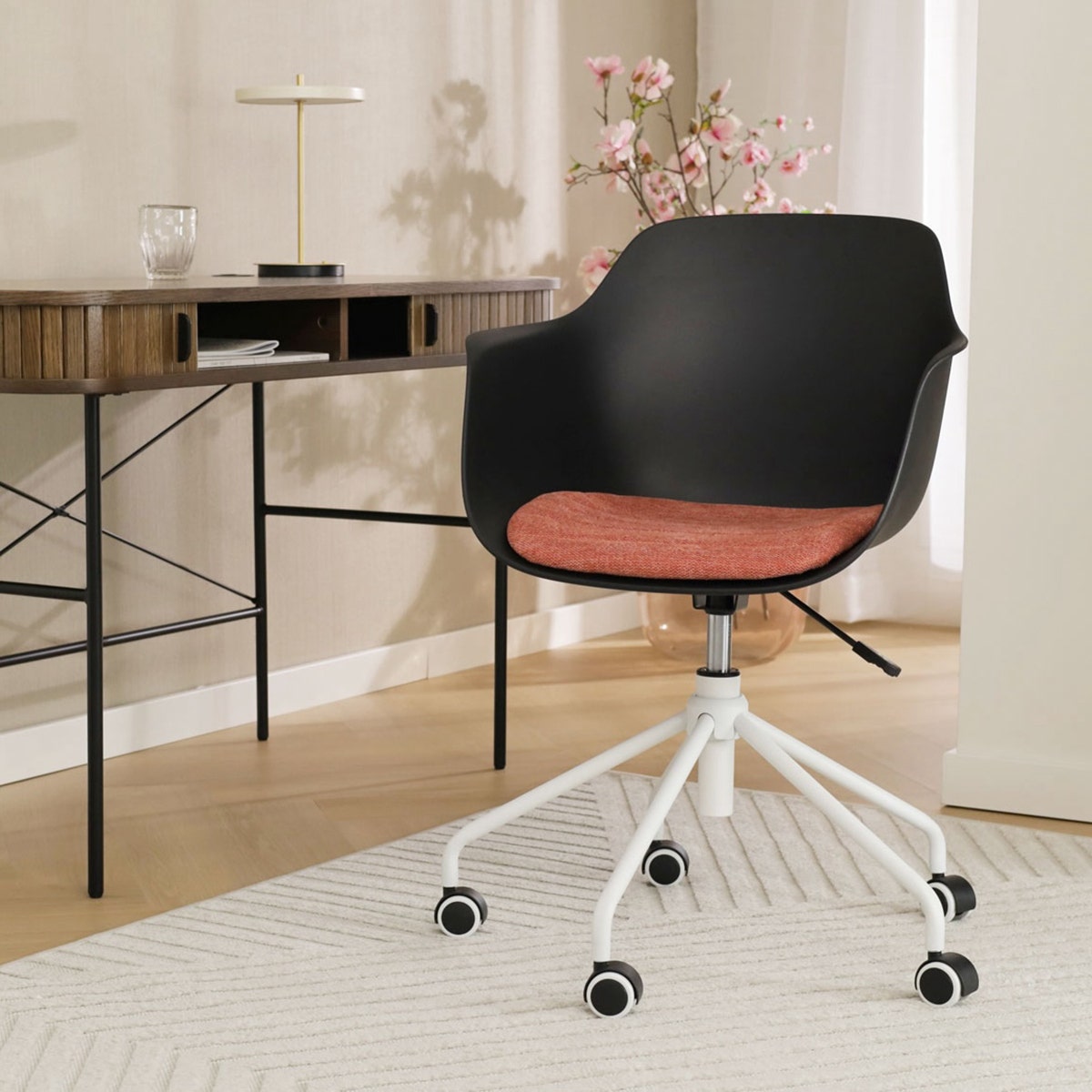 De Nout bureaustoel van Nolon is niet zomaar een standaard bureaustoel. Nout is een moderne bureaustoel, waar je zeker wel op wilt (thuis) werken of studeren. De zitting van de bureaustoel is verkrijgbaar in het kunststof en je kunt kiezen uit verschillende kleuren vaste zitkussens in de stoel. Bovendien heeft de zitting armleuningen, voor net nog iets meer comfort. Het onderstel is gemaakt van metaal en is in hoogte verstelbaar. Kortom, een moderne bureaustoel, waarin je ook lekker zit tijdens lange vergaderingen.