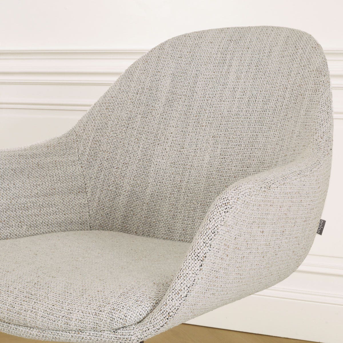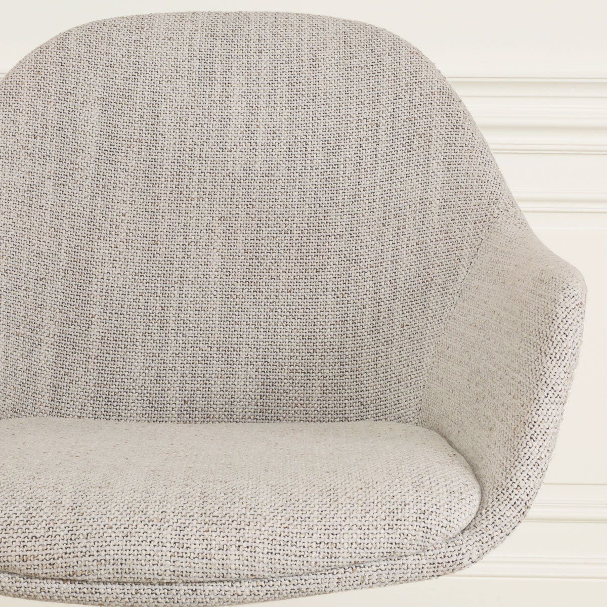 Deze draaibare bureaustoel is ontworpen om zowel praktisch als sfeervol te zijn, perfect voor langdurig comfort en een trendy uitstraling in je werkkamer. De Nout-Mae bureaustoel heeft een strak zwart metalen onderstel met vijf wieltjes, waarmee je soepel langs je bureau kunt bewegen. Dankzij de hendel onder de zitting pas je de stoel gemakkelijk in hoogte aan, met een bereik van 43 tot 48,5 centimeter, zodat je altijd op de juiste hoogte zit voor een ergonomische werkhouding. Deze bureaustoel biedt extra comfort dankzij de ronde zitting en de schuin aflopende armleuningen. De zitting is bekleed met beige gemêleerde stof, die niet alleen heerlijk aanvoelt maar ook een warme sfeer toevoegt aan jouw werkruimte. Kies voor deze beige bureaustoel van Nolon en maak van jouw werkplek een aangename ruimte.