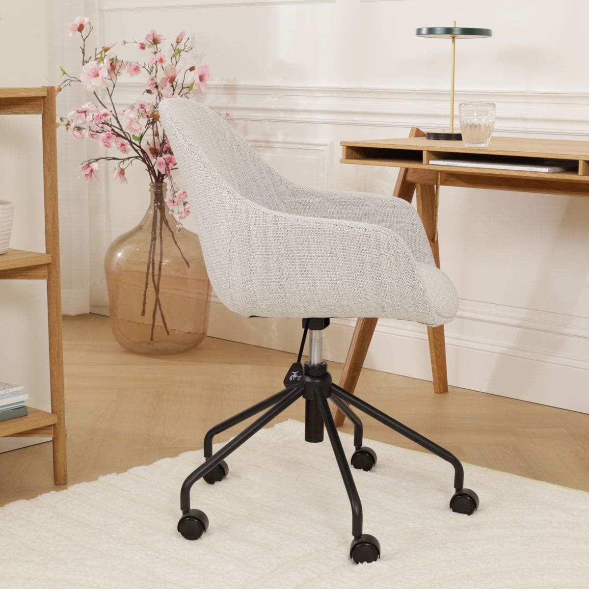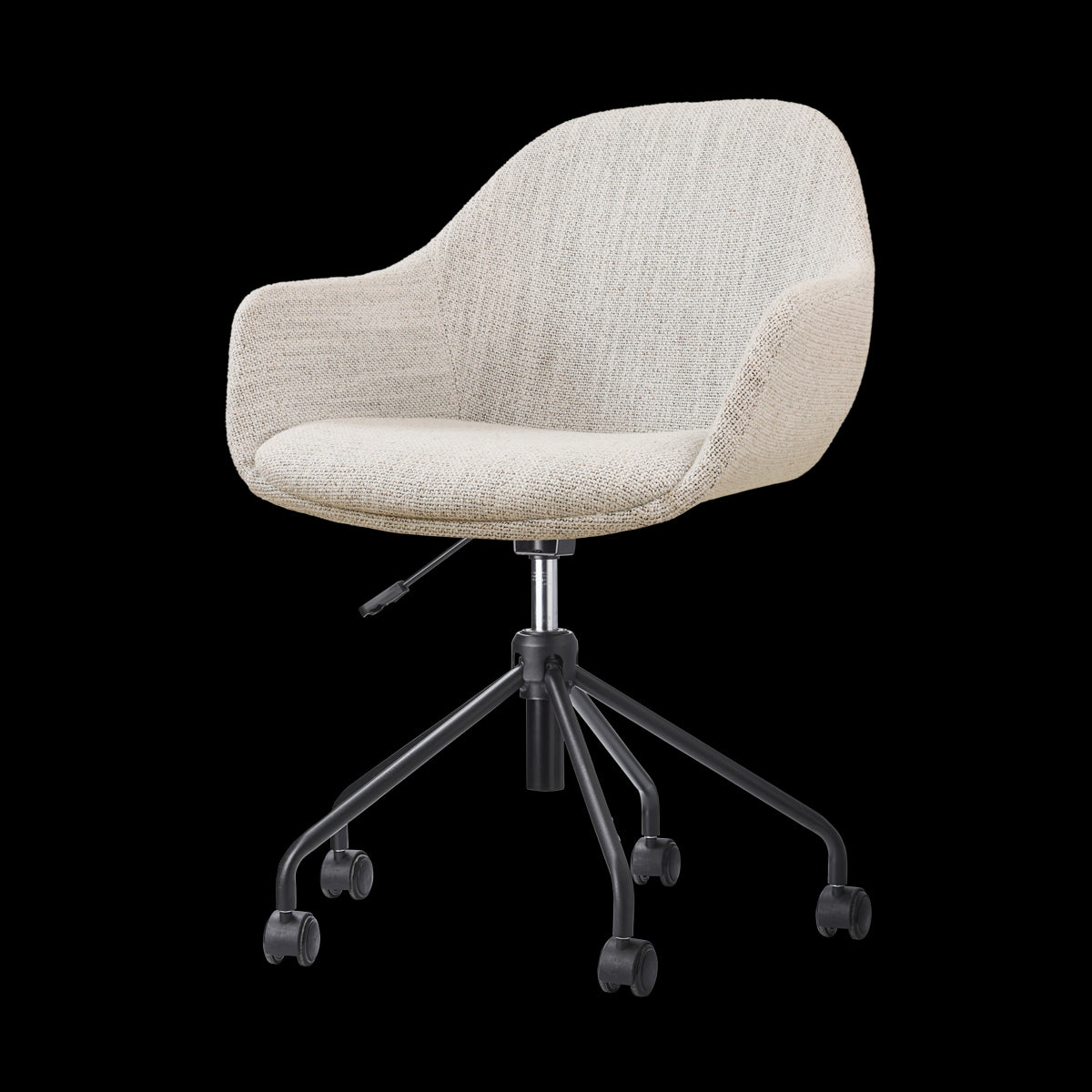 Met de Nout-Mae bureaustoel in het beige gemêleerde stof en zwarte poten van Nolon van je van jouw thuiswerkplek een gezellige ruimte.