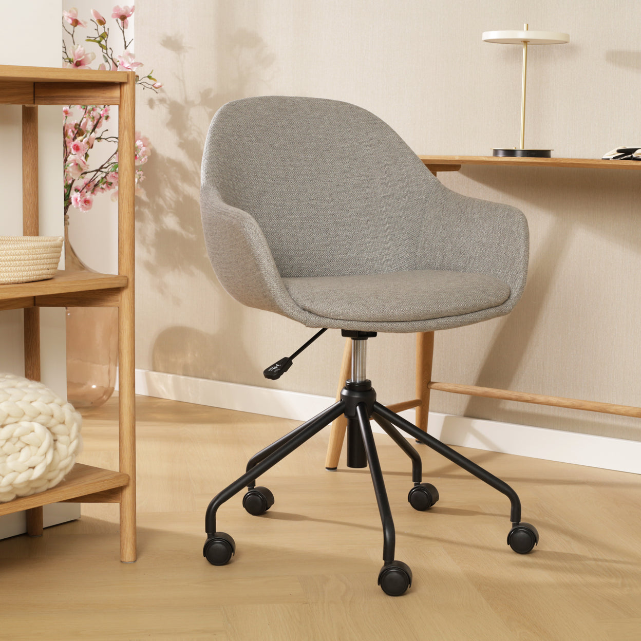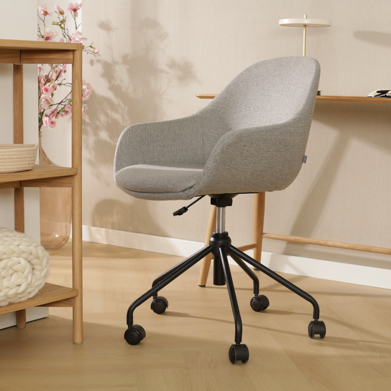 Moderne Scandinavische bureaustoel - warm grijs met zwarte poten.
