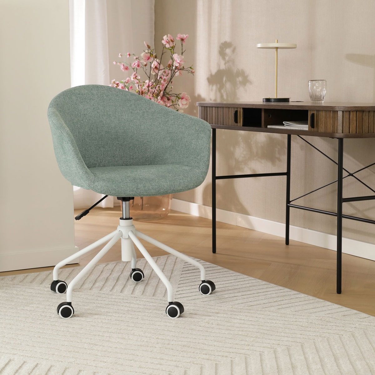 Deze bureaustoel heeft een robuust metalen onderstel met vijf soepel rollende wieltjes. De luxueuze stoffen zitting biedt ultiem zitgemak tijdens lange werk- of studeersessies. De ergonomisch ontworpen armleuningen zorgen voor optimale ondersteuning en verminderen spanning in de schouders en nek. Dankzij de verstelbare hoogte van het onderstel kan je de zithoogte aanpassen aan jouw bureau en persoonlijke voorkeur, zodat je altijd de juiste zithouding kan aannemen. Maak een keuze uit de zes verschillende kleuren bekleding en geef je kantoor of thuiswerkplek een upgrade met de Nout-Otis bureaustoel die stijl en functionaliteit perfect combineert. Comfortabel werken was nog nooit zo eenvoudig!
