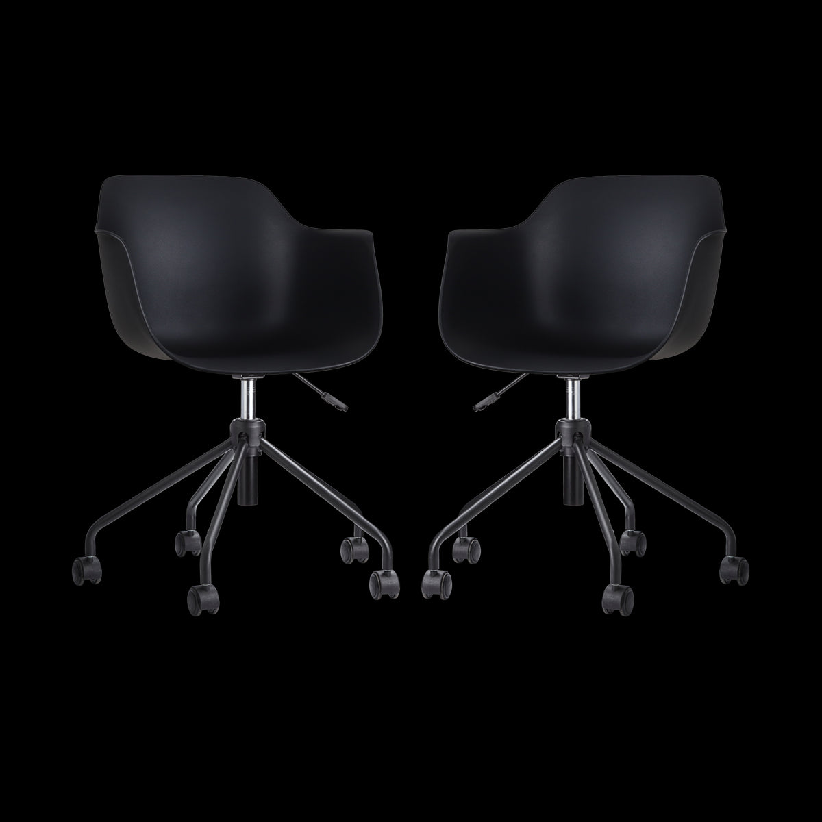 Deze set Nout-Puk bureaustoelen van Nolon ziet er niet alleen stijlvol uit, ze zitten ook nog eens erg comfortabel.