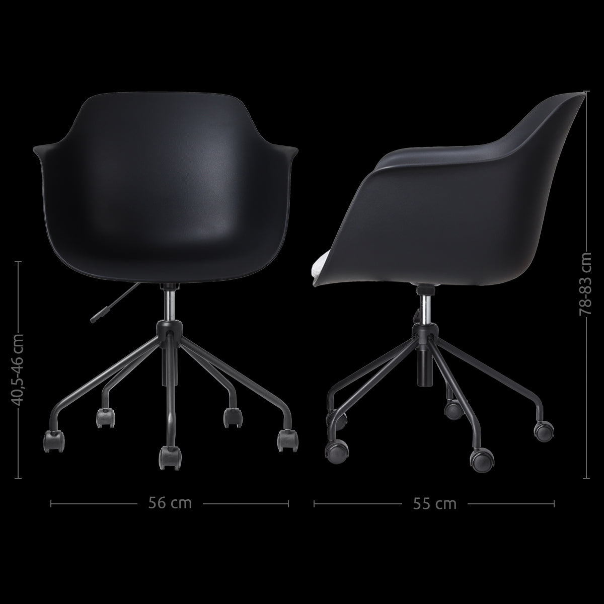 De bureaustoel heeft een kunststof kuipzitting met armleuningen om het lichaam optimaal te ondersteunen tijdens het werken. Dit materiaal is altijd enigszins flexibel, waardoor de zitting met het lichaam mee beweegt en voor veel comfort zorgt. Het metalen onderstel is voorzien van wieltjes en is in hoogte verstelbaar, zodat je op elke plek de juiste zithoogte aan kan houden en dus de perfecte zithouding hebt. Deze moderne bureaustoel heeft een tijdloos design dat in iedere thuiswerkplek tot zijn recht komt. Maak een keuze uit een compleet wit of zwart exemplaar, of ga voor een mix van deze twee kleuren. Met het Fem zitkussen van Nolon voeg je eventueel nog wat extra kleur en flair toe aan je werkplek, en zorg je ervoor dat je nog lekkerder zit. Bovendien is deze bureaustoel ook verkrijgbaar met een vast zitkussen als de Nout-Liz bureaustoel.
