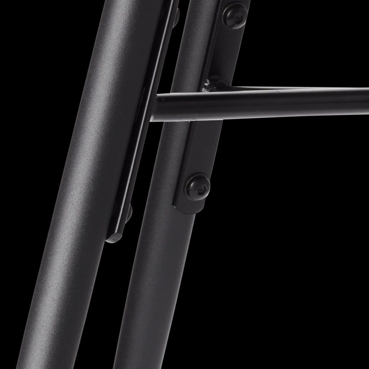 - Zwart metalen onderstel met taps toelopende poten en kruisverbinding
