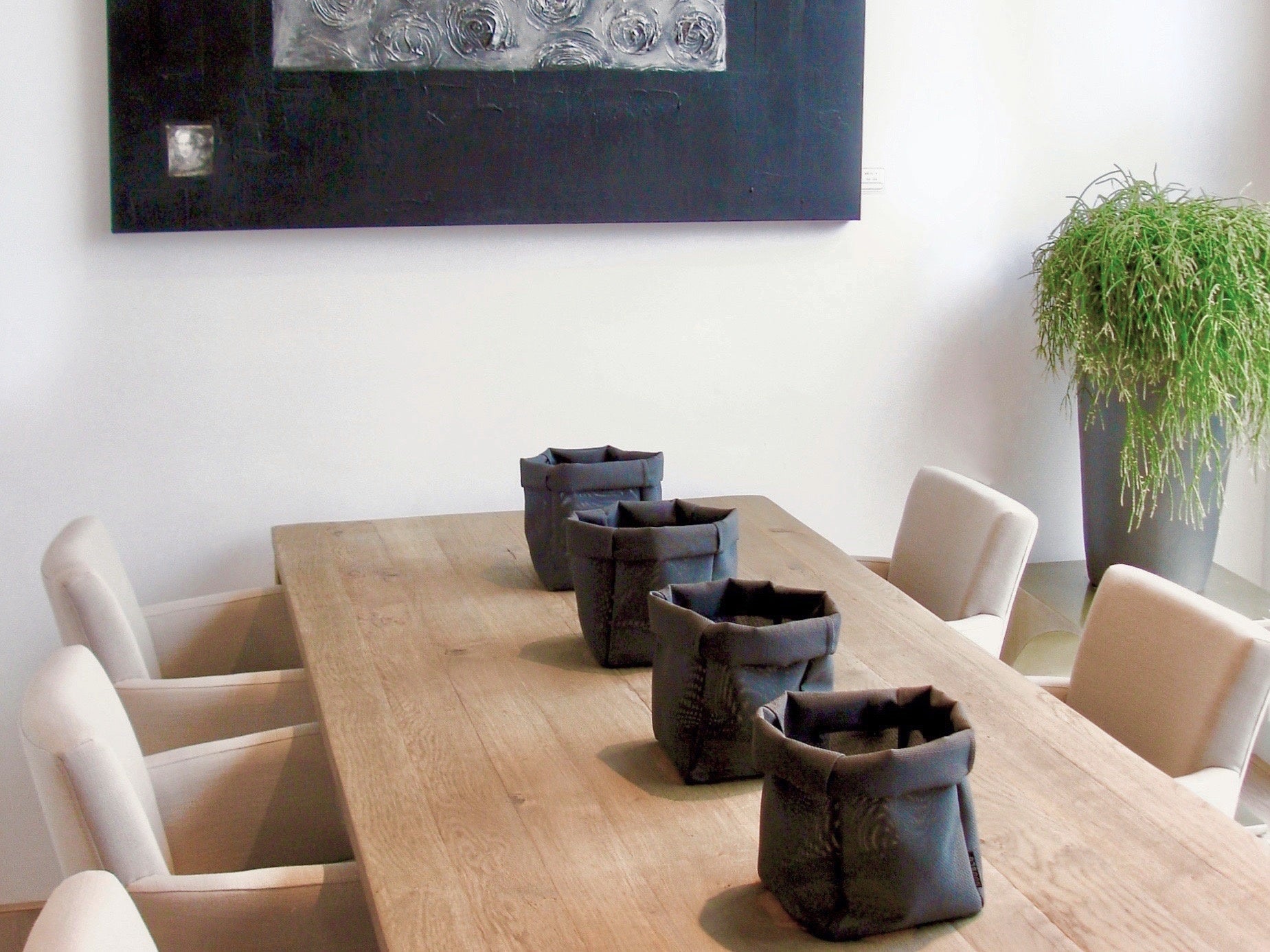 ZAQ is een duurzaam multifunctioneel mandje met een luxe look & feel. Dankzij het innovatieve Kevlux materiaal is ZAQ oersterk, machine wasbaar en kleurvast. Het in hoogte oprolbare mandje heeft in maat L een afmeting van ongeveer 17 x 17 x 27 cm.