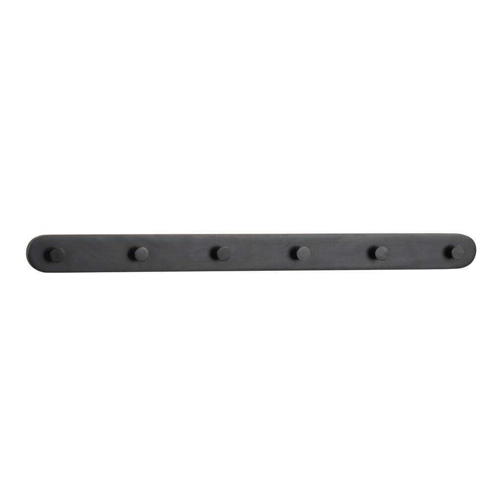 Een simpele kapstok met een strak design. Deze elegante kapstok is ideaal om jassen, tassen en sjaals aan op te hangen en is gemaakt van massief eikenhout. Deze kapstok past ook goed in de slaapkamer voor bijvoorbeeld je badjas. Specificaties - Afmetingen: H 5 x B 65 x D 3 cm - Gemaakt van zwart gelakt massief eikenhout - Beschikt over 6 haken - Goed te combineren met de Metro Shoe Rack - Houten schoenenrek Voordelen - Een leuk design object voor in de gang of hal - De tijdloze collectie van Nordiq - Nordiq is een fris en betaalbaar design label