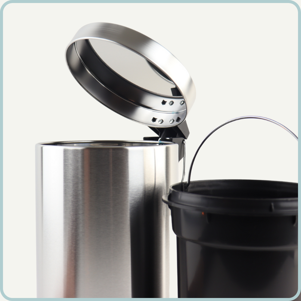 Zilveren pedaalemmer 3 liter van Nordix. De emmer is gemaakt van RVS en is daarmee hygiënisch in gebruik. Het formaat van de pedaalemmer is geschikt voor in de badkamer of toilet. Het vuilnisbakje bevat een uitneembare kunststof binnenemmer waardoor hij makkelijk te legen is.