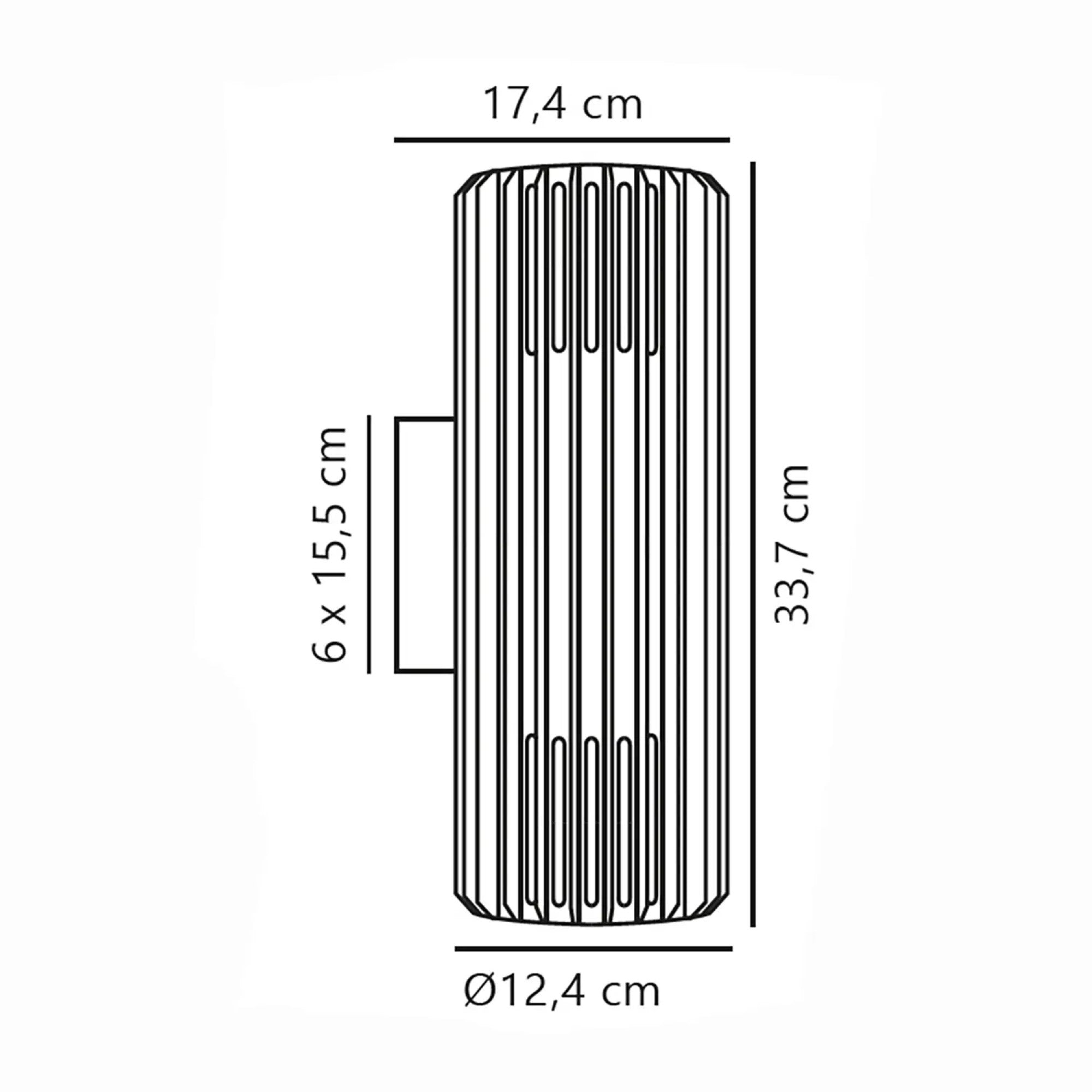 Deze grote Aludra wandlamp up en down heeft een hoogte van 33,7 cm en een breedte van 12,4 cm, de diepte is 17,4 cm. Dit armatuur is geschikt voor twee LED lampen van 15 Watt E27 (excl.). Gemaakt van hoogwaardig Aluminium icm met kunstof witte kappen, kleur: zwart.