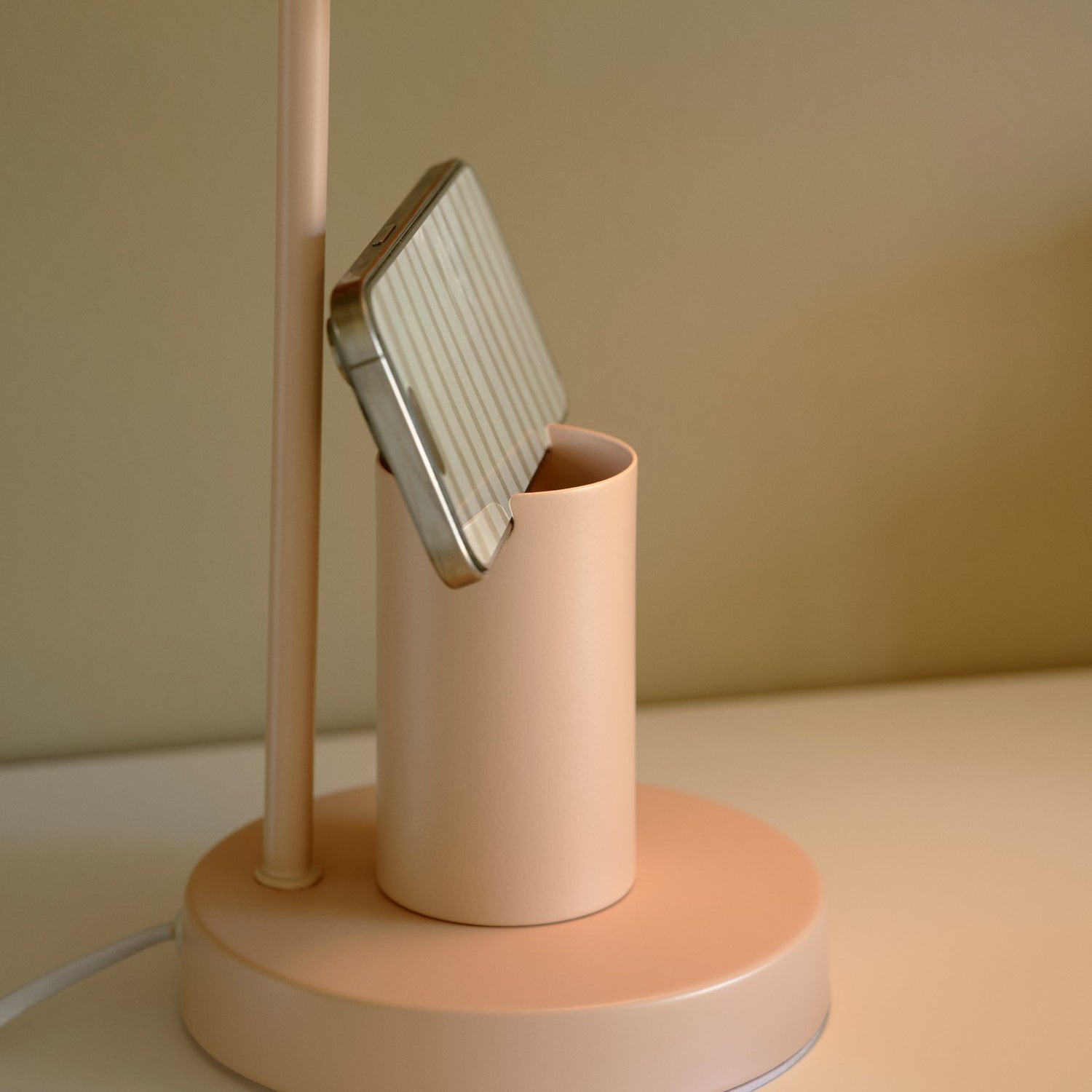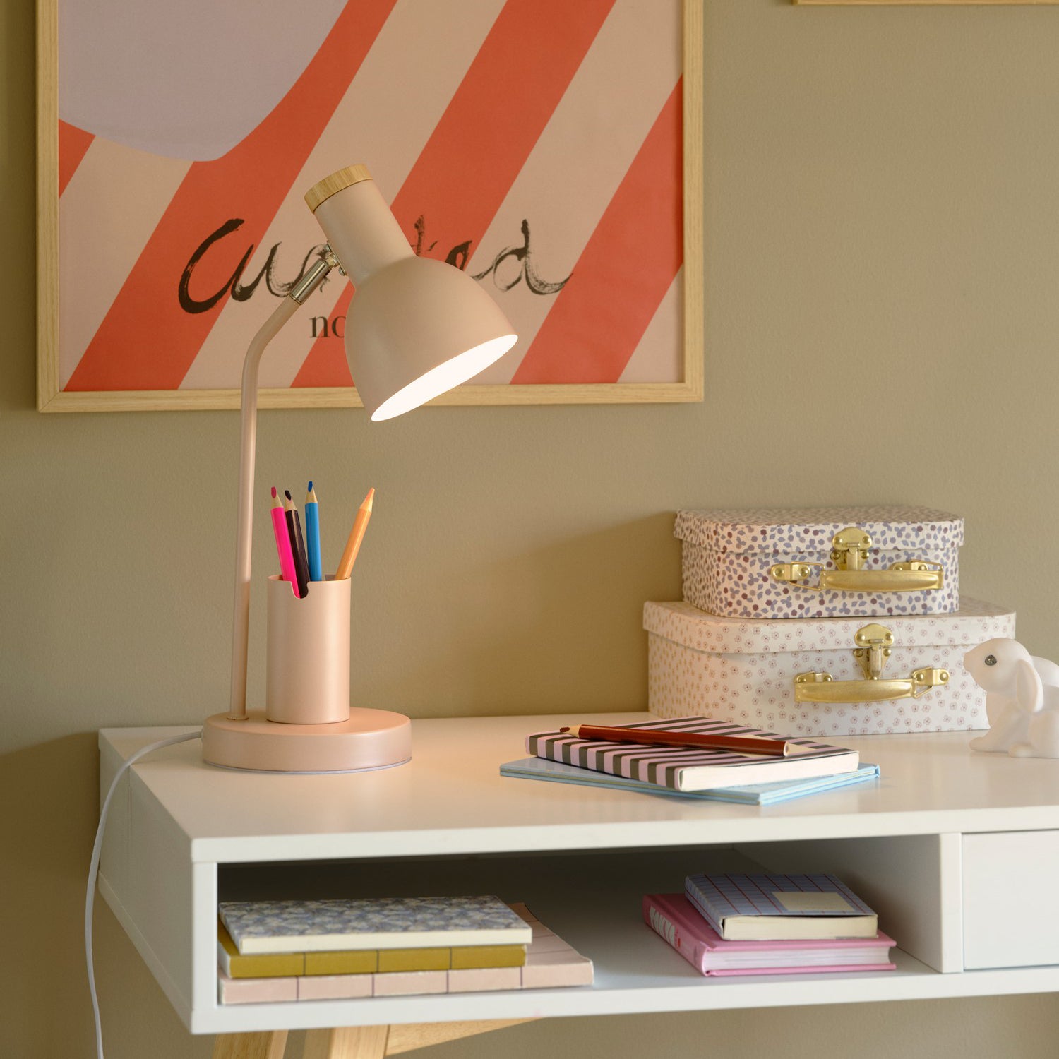 - Tafellampje van H 43,5 x Ø 15 cm met strak design