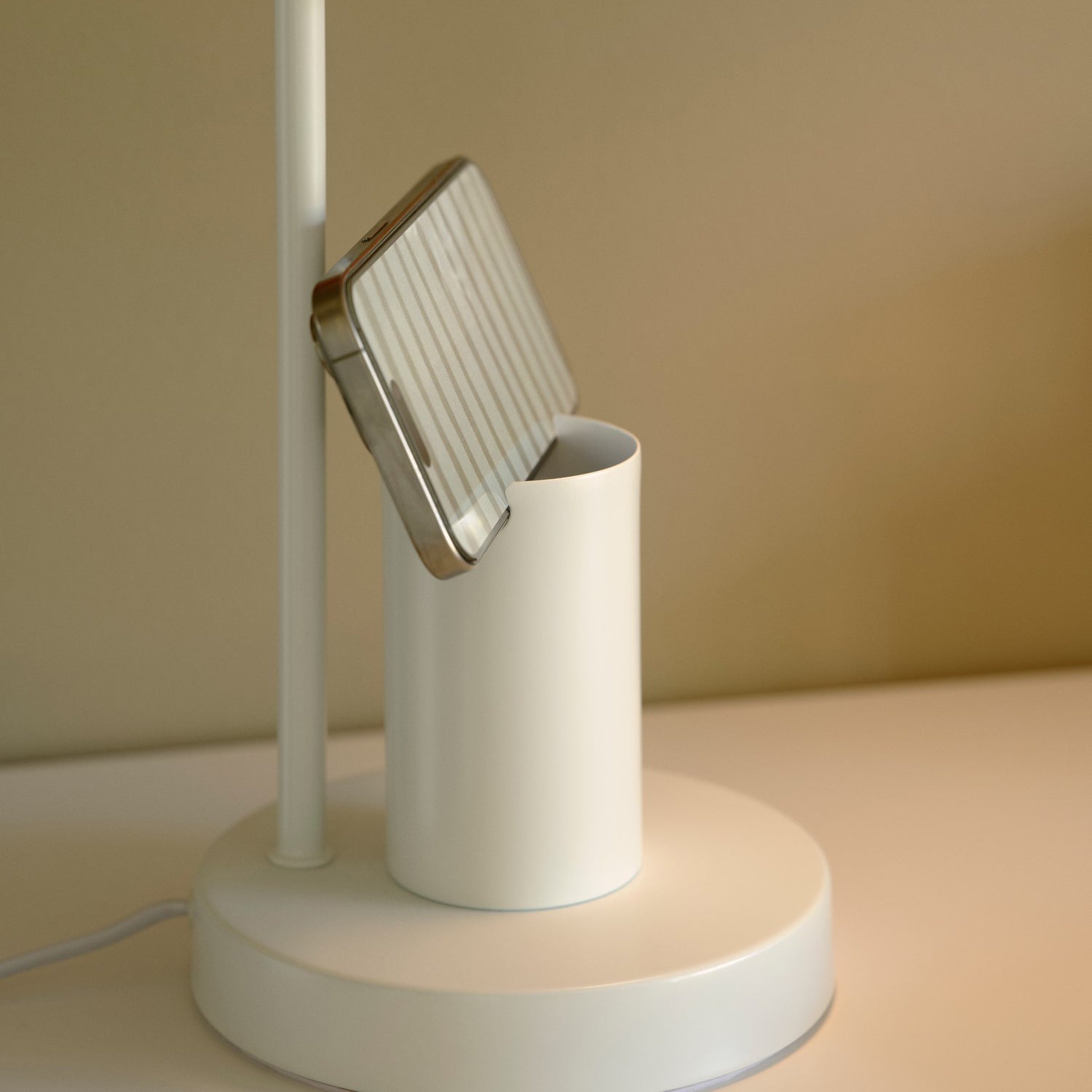 - Tafellampje van H 43,5 x Ø 15 cm met strak design